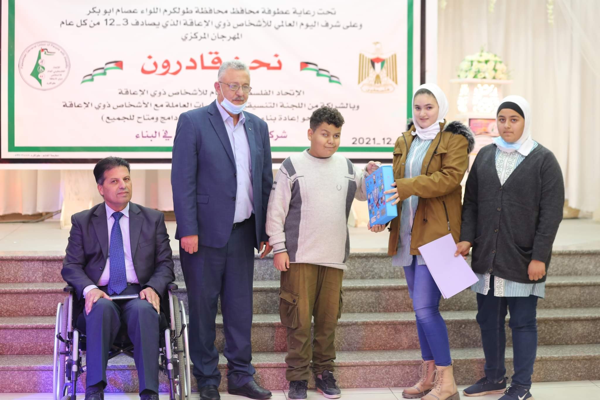 طولكرم – نظم الاتحاد الفلسطيني العام للأشخاص ذوي الإعاقة وتحت رعاية محافظ طولكرم عصام أبو بكر وبمشاركته وعلى شرف اليوم العالمي للأشخاص ذوي الإعاقة، المهرجان المركزي “نحن قادرون “، وذلك بالتعاون مع وزارة التربية والتعليم واللجنة التنسيقية للمؤسسات العاملة بهذا المجال “.