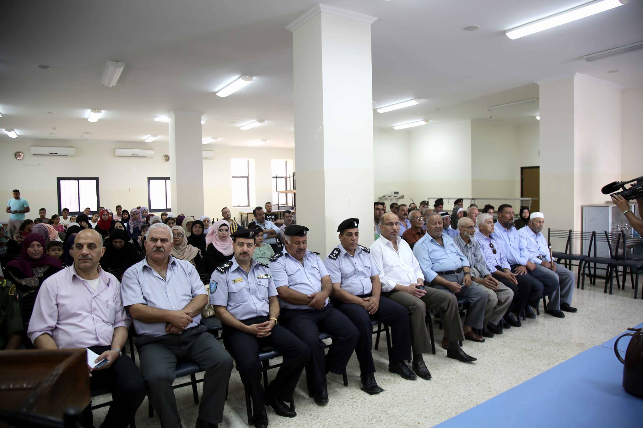 وفي نهاية الحفل الذي تخللته فقرات فنية للشاب يزن أبو مخ والشاعرة ثناء هرشه وعدد من الفقرات الفنية الأخرى كرم المحافظ أبو بكر وقائد المنطقة ومدراء الأجهزة الأمنية والتجمع الوطني لاسر الشهداء الطلاب والطالبات الناجحين بالتوجيهي.