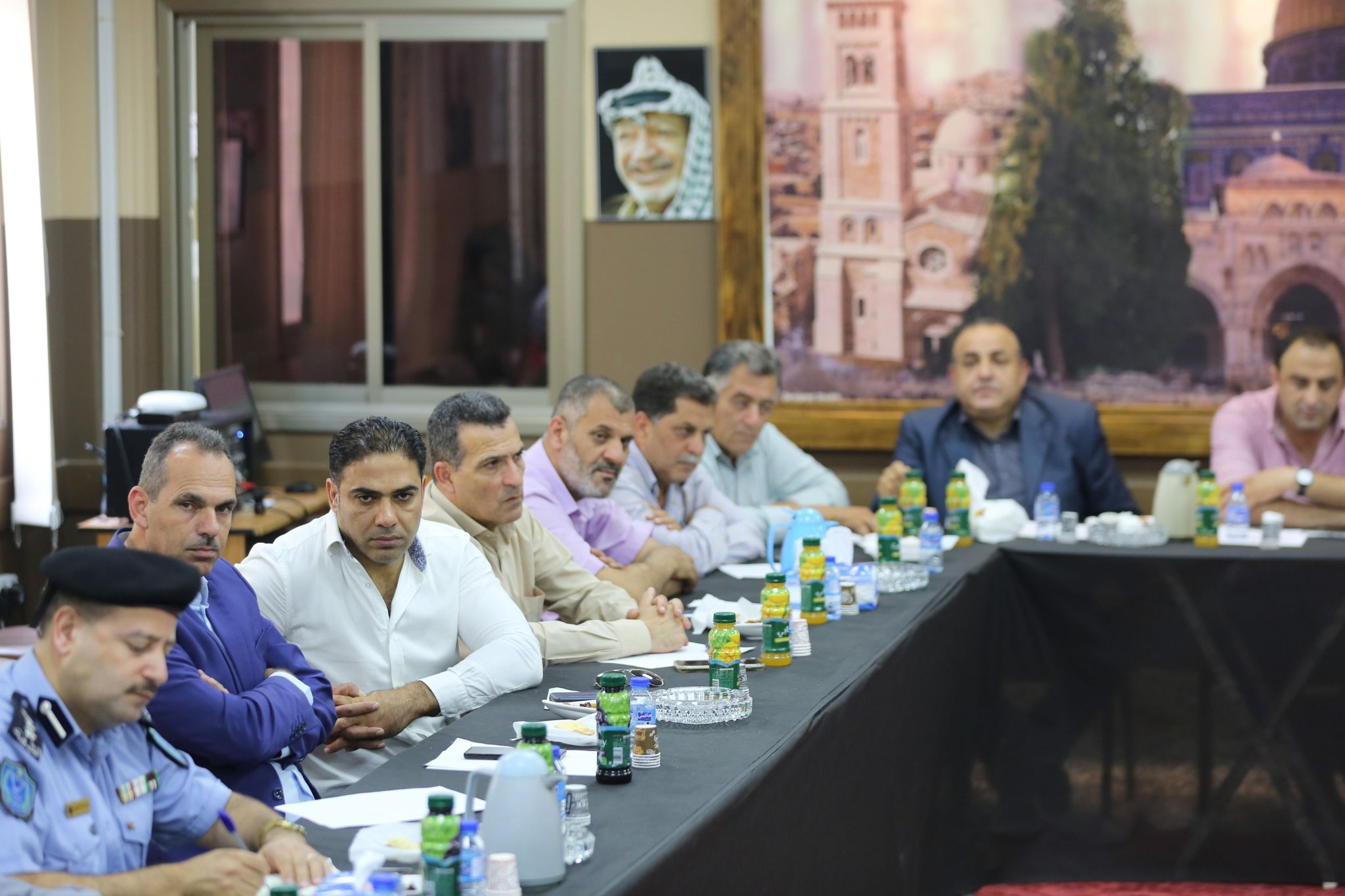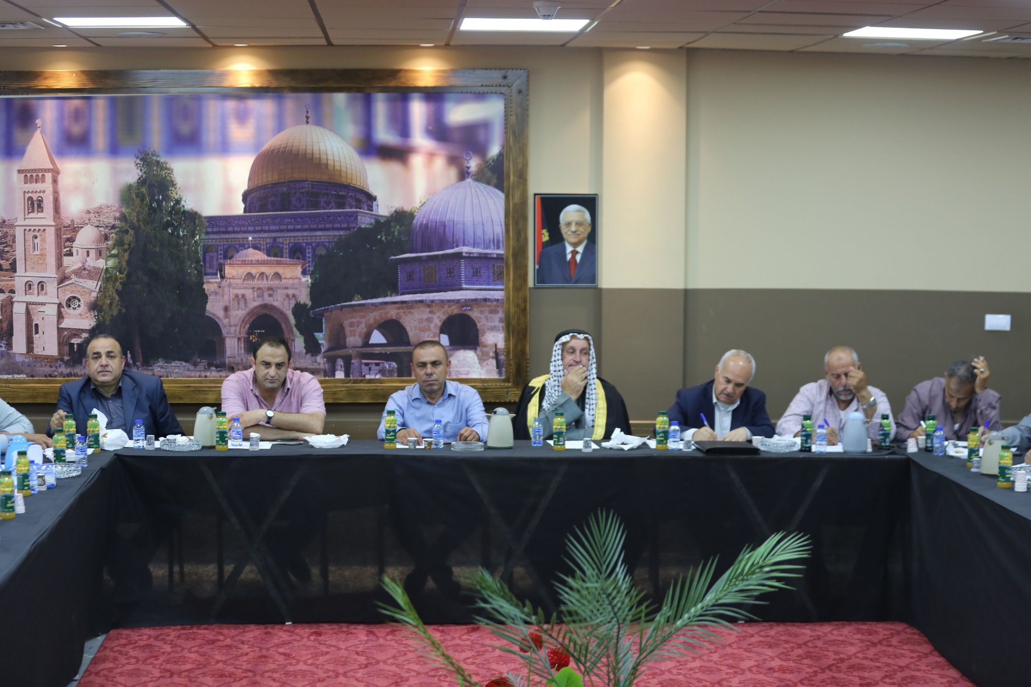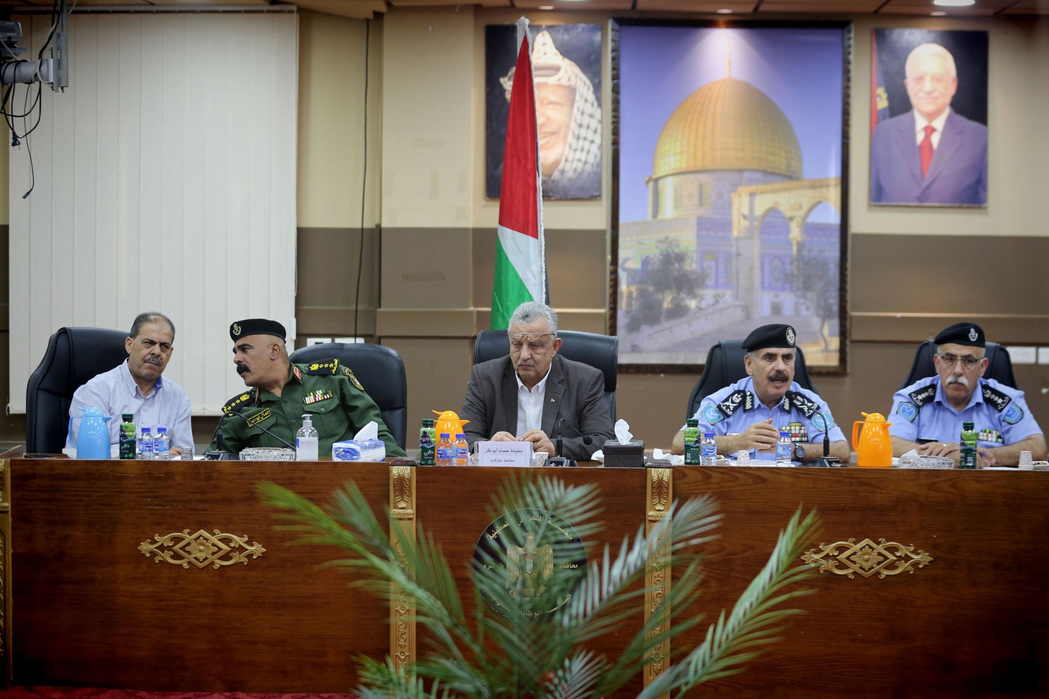 طولكرم – 9-8-2022 اجتمع محافظ طولكرم عصام أبو بكر ومدير عام الشرطة اللواء يوسف الحلو مع أعضاء المجلس التنفيذي بمحافظة طولكرم ورؤساء البلديات والمجالس المحلية والجهات المختصة ذات العلاقة، وذلك بمشاركة قائد المنطقة العميد جمال أبو العز، ومدراء الأجهزة الأمنية.