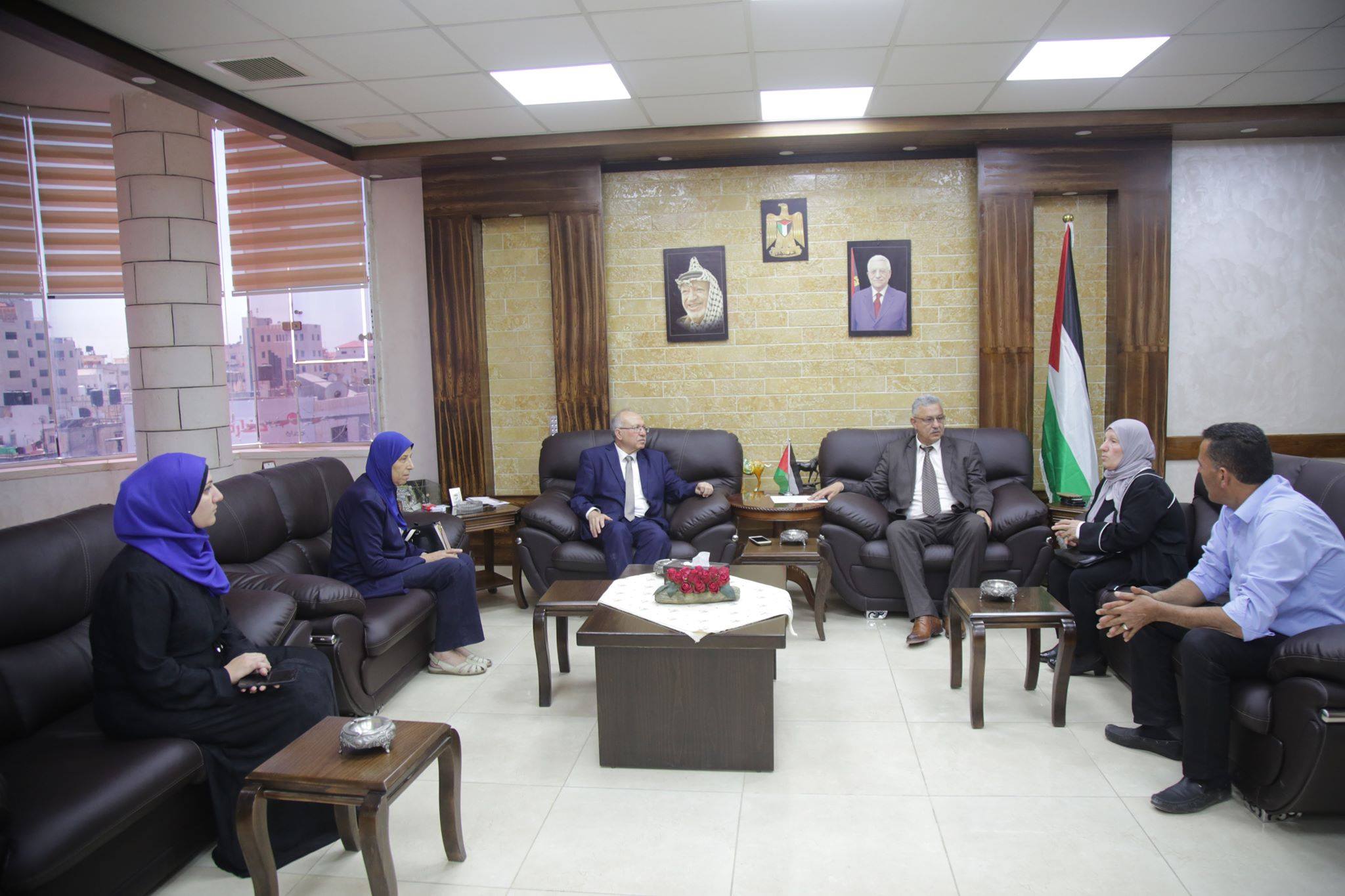 محافظ طولكرم اللواء د. كميل يستقبل وزيرة التنمية والإغاثة د. حمد ويناقشان مجموعة من القضايا