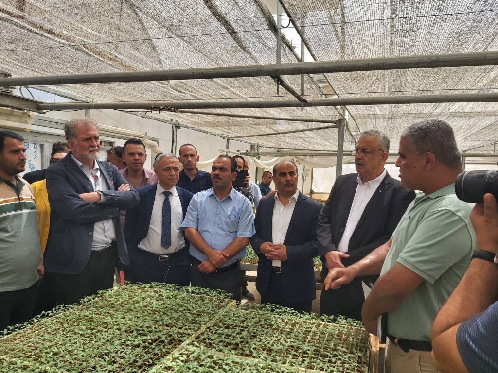 جاء ذلك خلال استقبال وفد من المؤسسات الدولية والمحلية ، ضم القنصل الإسباني العام بالقدس ألفونسو ماتيو، وممثل منظمة الأغذية والزراعة للأمم المتحدة (الفاو) في فلسطين السيد “شيرو فيوريلو، وعدد من القناصل والممثلين الدوليين والمحليين، وبحضور قائد المنطقة العميد جمال أبو العز، ومدراء الأجهزة الأمنية،و رئيس بلدية طولكرم رياض عوض ورئيس الغرفة التجارية إبراهيم أبو حسيب ، حيث تضمنت الجولة الإطلاع على المشاريع الزراعية المنفذة ، منها زيارة جمعية ذنابه التعاونية وتفقد مشتل إنتاج الخضار ، والإطلاع على محطة طاقة شمسية وزيارة خزان مياه زراعي بشويكه، وتفقد العديد من المشاريع الزراعية في عتيل و منطقة الشعراوية.