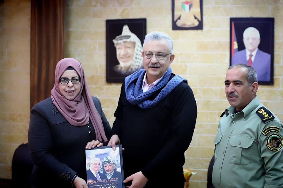 طولكرم – تَسلم محافظ طولكرم عصام أبو بكر في دار المحافظة ، التقرير السنوي لأنشطة مديرية التوجيه السياسي والوطني بطولكرم خلال عام 2021 . جاء ذلك خلال استقبال مدير التوجيه السياسي بطولكرم العميد عايدة طقاطقه، وعدد من كادر المديرية، وبحضور الجهات المختصة بمؤسسة المحافظة.