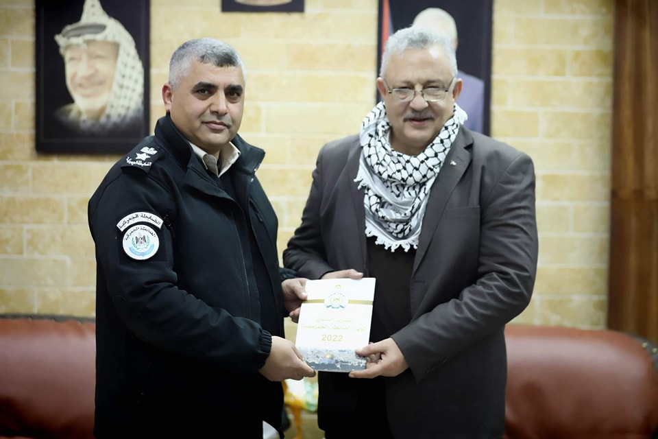 طولكرم – 5-2-2023- تسلم محافظ طولكرم عصام أبو بكر من مدير الضابطة الجمركية بطولكرم المقدم أمجد براهمه، التقرير السنوي لانجازات عمل الجهاز خلال عام 2022.