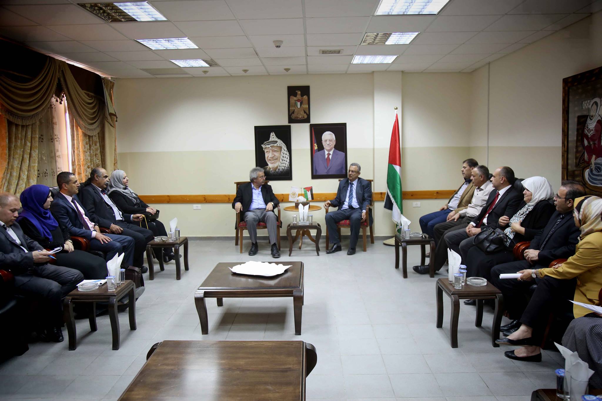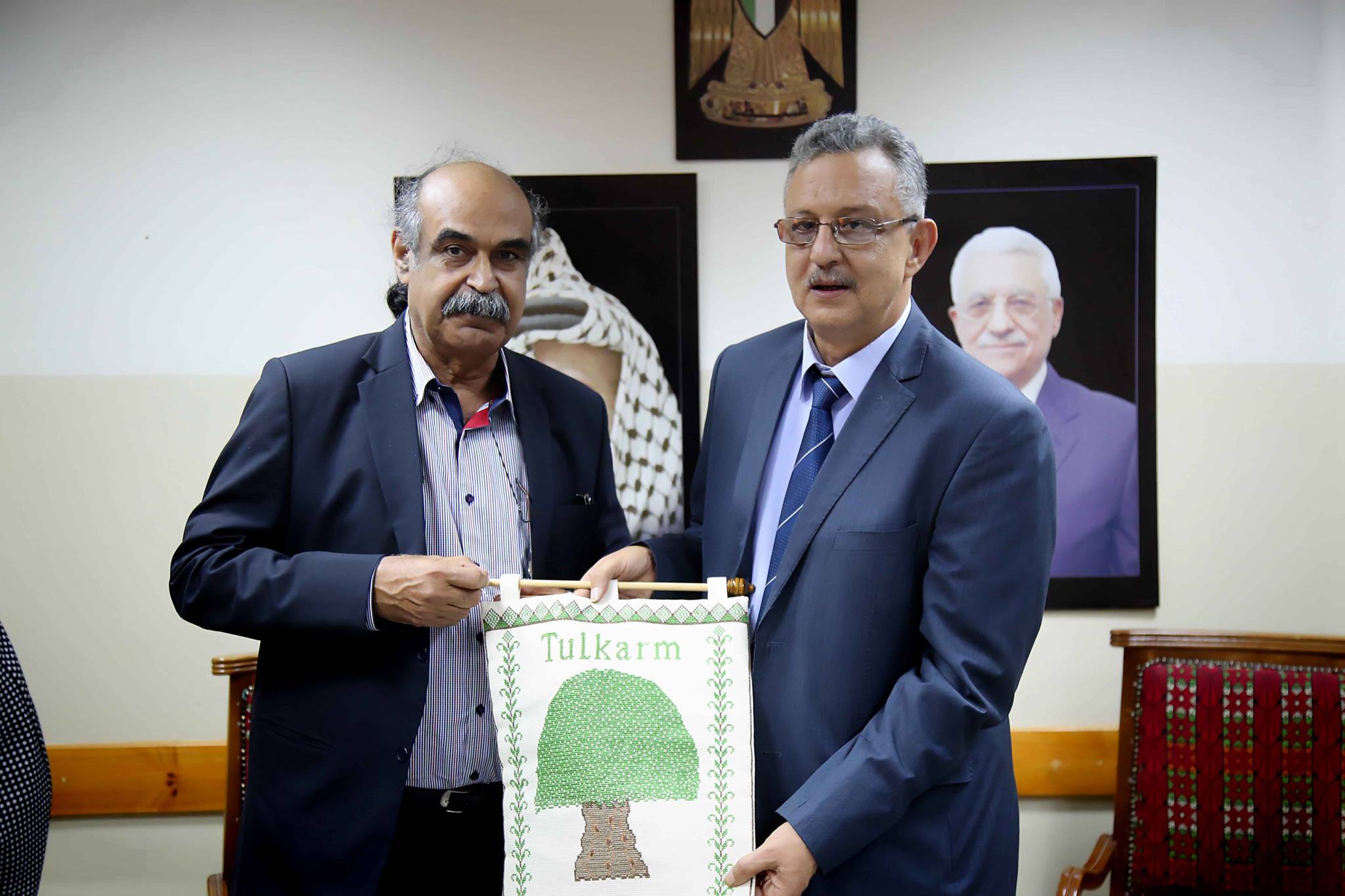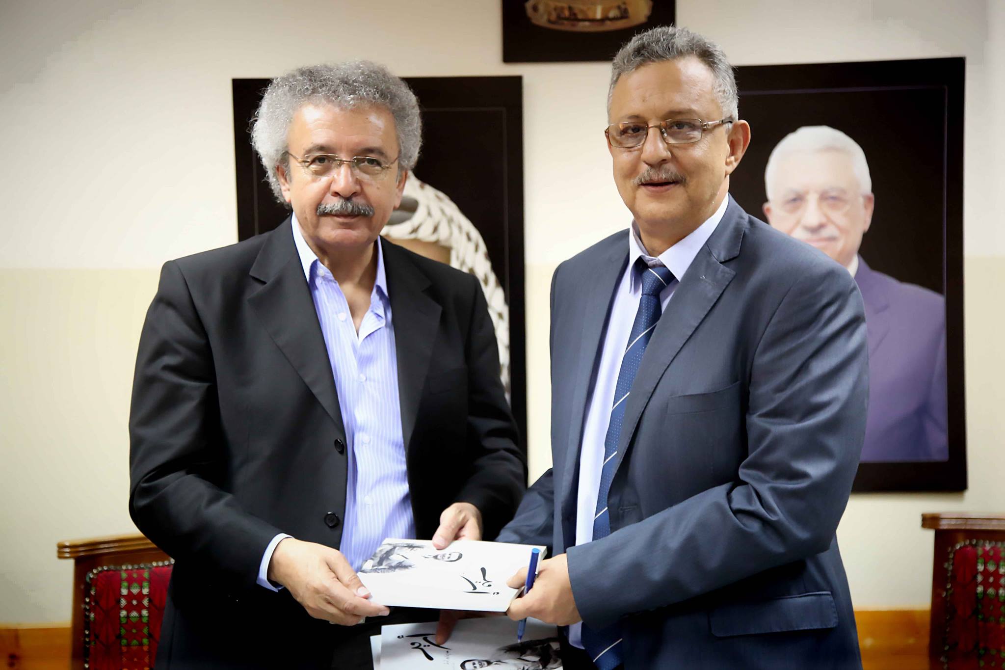 طولكرم- استقبل محافظ طولكرم عصام أبو بكر في دار المحافظة كلاً من الروائي إبراهيم نصر الله والشاعر البحريني قاسم حداد وسامح خضر مدير متحف محمود درويش وذلك بحضور مدير التربية والتعليم سلام الطاهر وأسمهان عزوني منسق الصالون الثقافي الكرمي ومنتصر الكم مدير الثقافة،إلى جانب مشاركة جهات الاختصاص بالمحافظة.