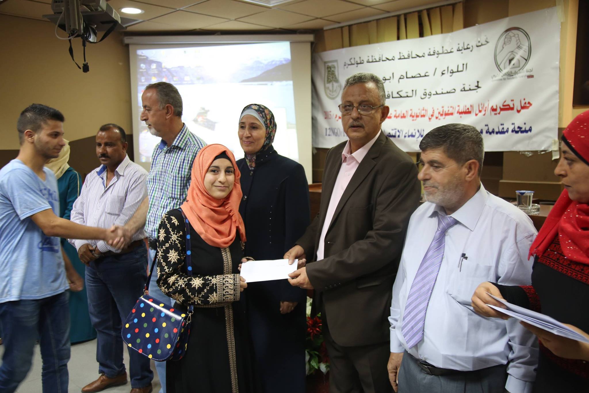 طولكرم- وزعت لجنة صندوق التكافل الخيري في محافظة طولكرم منحة لأوائل طلبة الثانوية العامة ” التوجيهي” مقدمةً من الصندوق العربي للإنماء الاقتصادي والاجتماعي بالكويت والتي استفاد منها (44) طالباً بواقع (300) دينار لكل طالب.