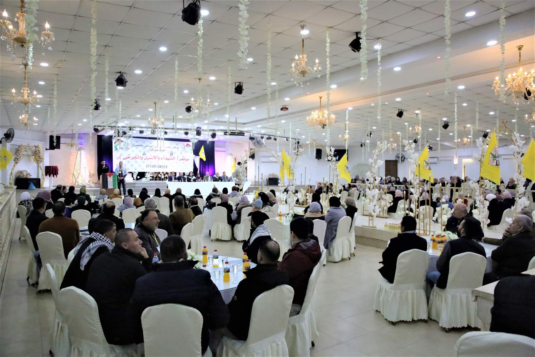 طولكرم – 3-1-2023 – عقد المكتب الحركي الفرعي للمعلمين – إقليم طولكرم، مؤتمر الشهداء والاسرى، وذلك بمشاركة كل من ميسون زريقي رئيس وحدة العلاقات العامة ممثلة عن محافظ طولكرم عصام أبو بكر، وأمين سر إقليم فتح إياد جراد ” أبو الصامد” وعمر شحرور امين سر المكاتب الحركية بالاقليم، ونعيم مرار ممثلا عن مفوضية المنظمات الشعبية بحركة فتح، ونداء جبر امين سر المكتب الحركي المركزي للمعلمين، ومدير عام التربية والتعليم بطولكرم سائد قبها، ومحمد منيزل امين عام اتحاد المعلمين فرع طولكرم، وعصام الشيخ علي عضو الأمانة العامة لاتحاد المعلمين، ود صالح طلوزي من المكتب الحركي المركزي، وممثلي المؤسسات الرسمية والأهلية والقطاعات ذات العلاقة.