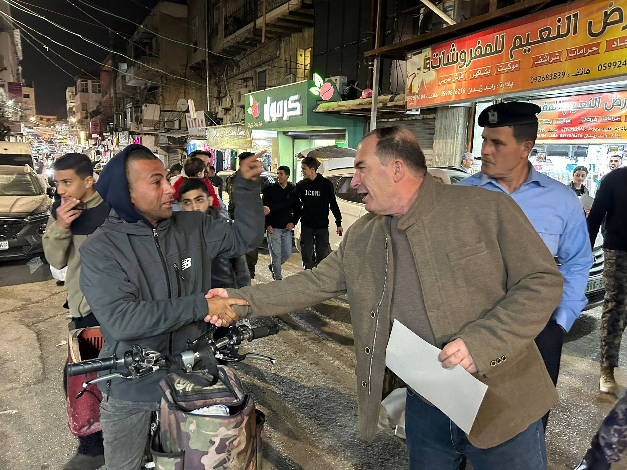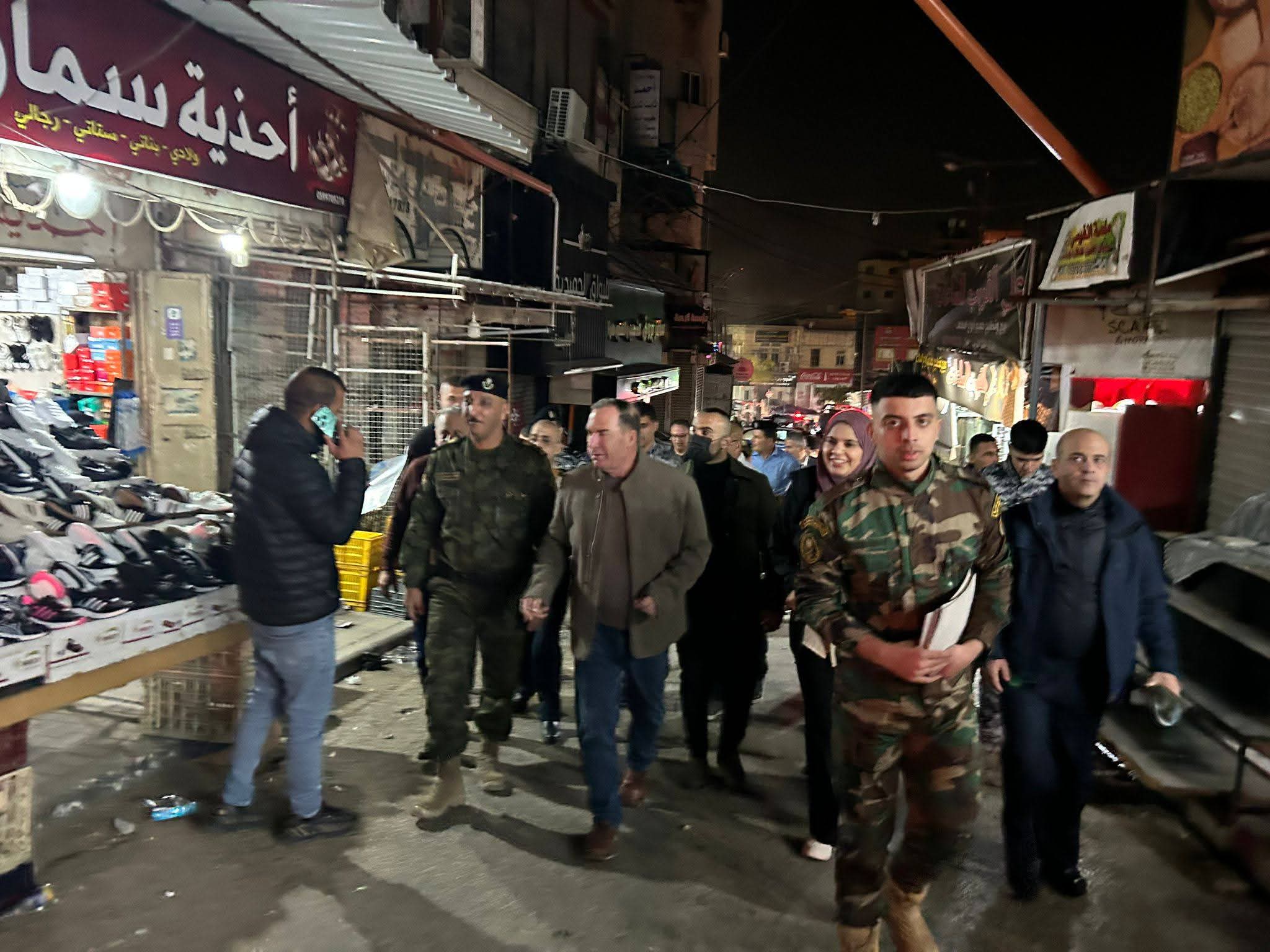 طولكرم – ١٧-٢-٢٠٢٦ تفقد محافظ طولكرم اللواء د. عبد الله كميل، يرافقه قائد المنطقة العقيد محمد البزور و مدراء الأجهزة الأمنية، ورئيس الغرفة التجارية قيس عوض، أسواق مدينة طولكرم مع بداية حلول شهر رمضان الفضيل، وذلك بمشاركة أعضاء لجنة العلاقات العامة في المؤسسة الأمنية، حيث جاءت الجولة مع بداية حلول شهر رمضان الفضيل.