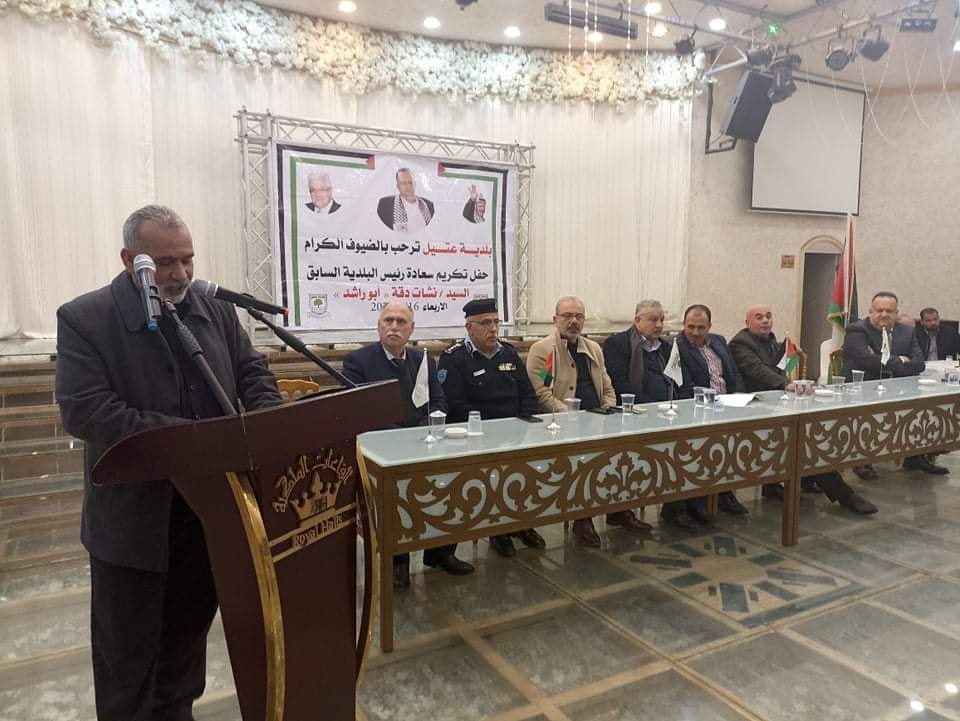 هذا وتخلل التكريم، كلمات لرئيس بلدية عتيل د. حسام أبو ماضي، وأمين سر فتح بطولكرم إياد جراد، ومدير عام الحكم المحلي بطولكرم راغب أبو دياك، والذين أشادوا بالدور المميز لرئيس البلدية السابق نشأت الدقة، خلال فترة العمل بالدورات الانتخابية السابقة والتي تخللها الكثير من الإنجازات.