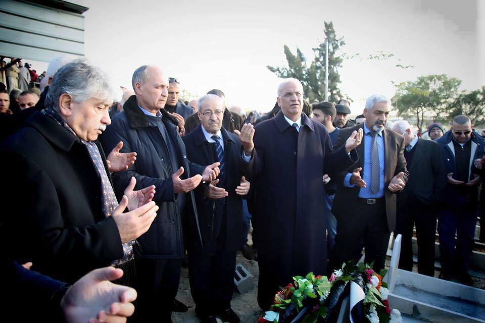 طولكرم- شيعت جماهير شعبنا الفلسطيني جثمان القائد الوطني جميل شحاده عضو اللجنة التنفيذية لمنظمة التحرير والأمين العام للجبهة العربية الفلسطينية، خلال مراسم رسمية وشعبية،بمشاركة أمين سر اللجنة التنفيذية د. صائب عريقات، ممثلاً عن الرئيس محمود عباس “أبو مازن” وحضور اعضاء اللجنة التنفيذية والمركزية لحركة فتح والمجلس الثوري والمجلس التشريعي، ومستشار الرئيس لشؤون المحافظات اللواء الحاج اسماعيل جبر ومحافظ طولكرم عصام أبو بكر والمحافظين، والأمناء العامون للفصائل، وقيادة المنطقة ورؤساء الأجهزة الأمنية، وممثلي المؤسسات الأهلية ورؤساء البلديات وذوي الفقيد وعائلته ورفاقه بالجبهة العربية الفلسطينية.