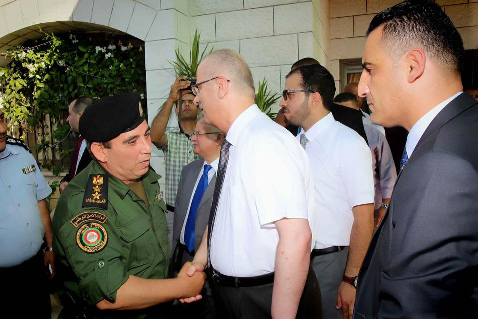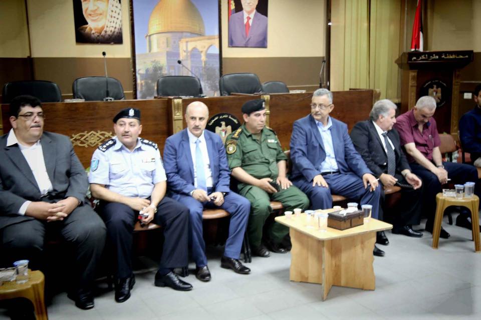 محافظ طولكرم عصام ابو بكر ونائب قائد المنطقة العقيد زاهي سعاده ومدراء الاجهزة الامنية ومدراء المؤسسات الرسمية والاهلية ورؤساء البلديات والمجالس المحلية ورئيس الغرفة التجارية ابراهيم ابو حسيب وفعاليات المحافظة يقدمون التهاني لرئيس الوزراء د. رامي الحمد الله بمناسبة حلول عيد الفطر السعيد.