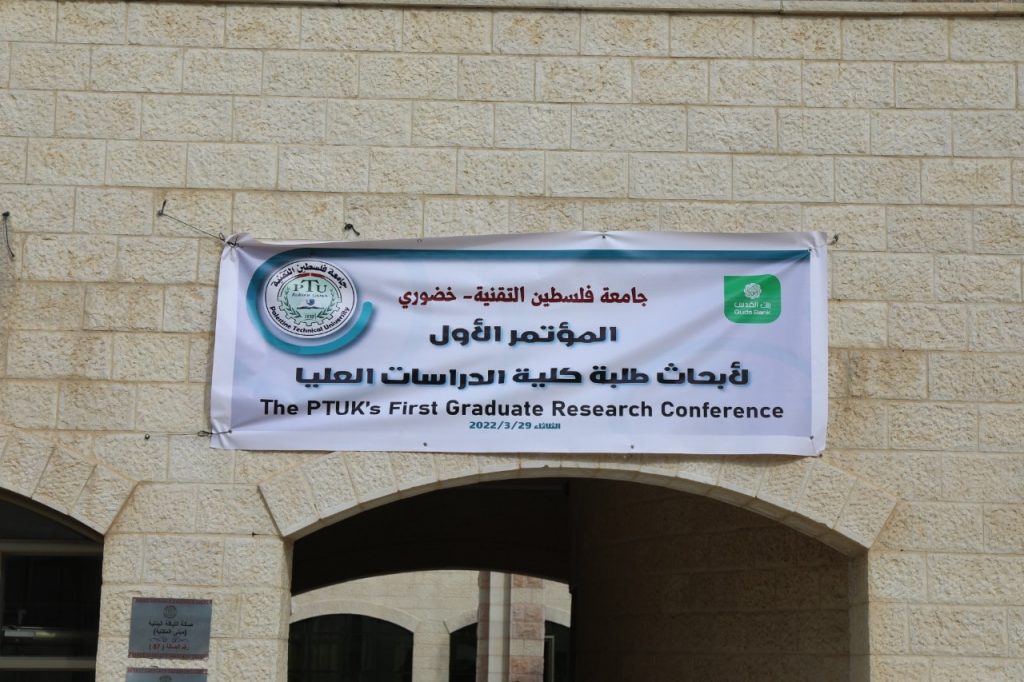 نظمت جامعة فلسطين التقنية- خضوري، مؤتمرها الأول لأبحاث طلبة الدراسات العليا داخل الحرم الجامعي، بحضور كل من إبراهيم عبد العال ممثلاً عن محافظ طولكرم عصام أبو بكر و رئيس الجامعة أ.د نور الدين أبو الرب، ورئيس أكاديمية فلسطين للعلوم والتكنولوجيا أ.د مروان عورتاني، وعميد كلية الأبحاث في الجامعة العربية الأمريكية د. محمد عوض، ومدير العلاقات العامة لبنك القدس نور محمد، ، وبحضور ممثلي المؤسسات الرسمية والأهلية ومراكز البحوث وكادر وطلبة كلية الدراسات العليا.