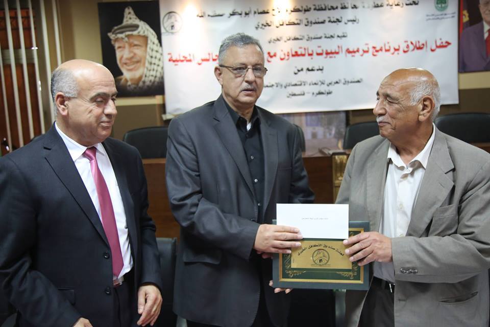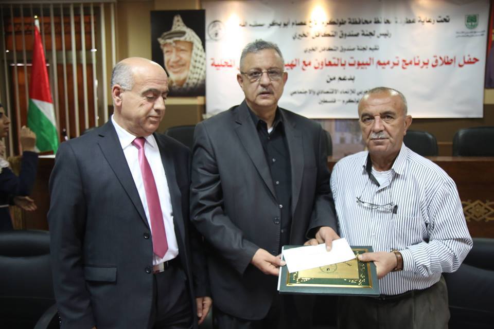 وتابع المحافظ أبو بكر قائلاً: ” هذا البرنامج، يعزز من صمود المواطنين على الأرض، حيث نوجه التحية للبلديات والمجالس المحلية الشريكة بتنفيذ المراحل الثلاث من الترميم الجزئي، كما نؤكد على جهود اعضاء مجلس ادارة لجنة صندوق التكافل الخيري، ولجنة ترميم المنازل، واللجنة الاجتماعية، وجميع لجان الصندوق على ما بذلوه من تعاون وشراكة لانجاز المراحل السابقة وتنفذ المرحلة الحالة”.