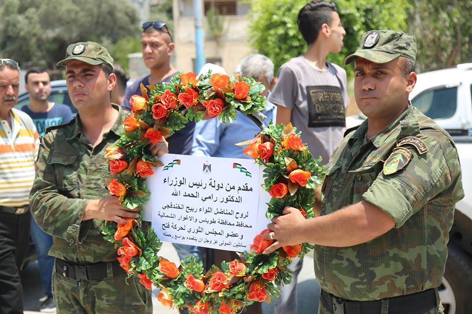 طولكرم – شيعت جماهير شعبنا الفلسطيني وبحضور رسمي وشعبي وبمراسم عسكرية جثمان المناضل اللواء ربيح الخندقجي محافظ طوباس والأغوار الشمالية- عضو المجلس الثوري لحركة فتح، حيث وري الثرى بالمقبرة الغربية بمدينة طولكرم، وجرت المراسم بمشاركة محمود العالول نائب رئيس حركة فتح ممثلاً عن الرئيس محمود عباس، ورئيس الوزراء د. رامي حمد الله،والحاج إسماعيل جبر مستشار الرئيس لشؤون المحافظات، ورئيس المحكمة الدستورية د. محمد الحاج قاسم، ومحافظ طولكرم عصام أبو بكر، ونائب محافظ طوباس أحمد أسعد والمحافظين والوزراء والمؤسسات الرسمية، وأعضاء اللجنة المركزية لحركة فتح، وأمين سر المجلس الثوري ماجد الفتياني، وأعضاء المجلس الثوري، ورؤساء الأجهزة الأمنية، وأعضاء المجلس التشريعي، والأمناء العامون للفصائل والاحزاب، والوفود من الداخل، والنقابات والجمعيات، والمؤسسات الأهلية، ورؤساء البلديات والمجالس المحلية والقروية، والغرف التجارية على مستوى الوطن، وذوي المرحوم الخندقجي وعائلته، وعموم الفعاليات على مستوى الوطن.