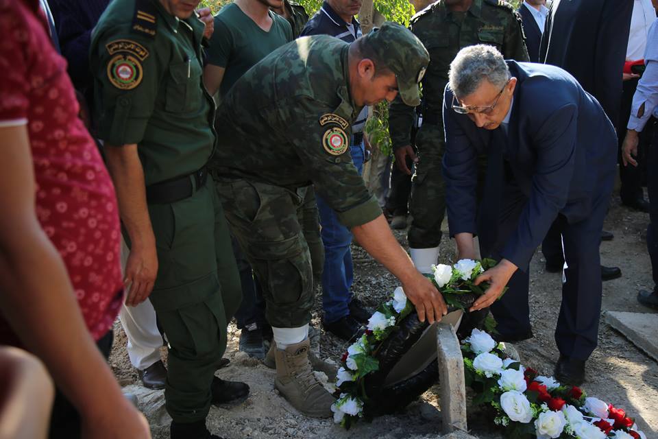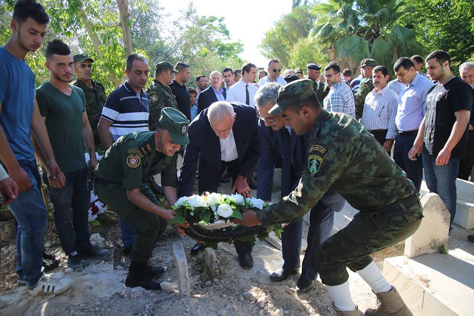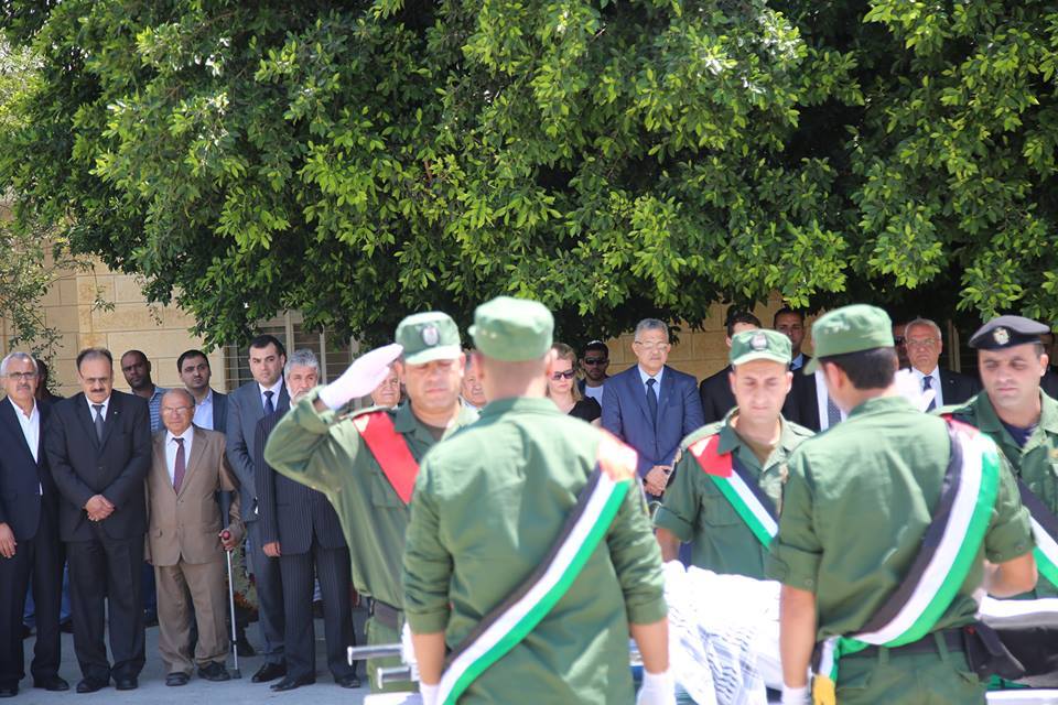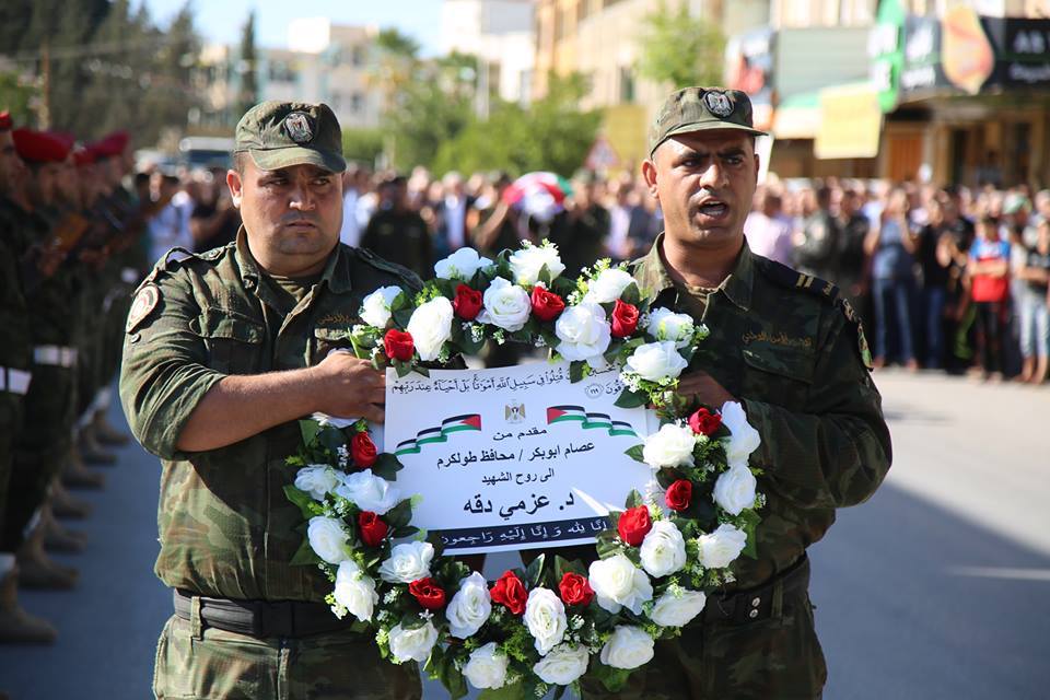 ووضع اللواء الحاج إسماعيل جبر مستشار الرئيس لشؤون المحافظات إكليلا من الزهور باسم الرئيس محمود عباس على ضريح المناضل السفير د. عزمي دقه، وفي ذات الوقت وضع المحافظ أبو بكر إكليلاً من الزهور باسم المؤسسات الرسمية والمؤسسة الأمنية وفعاليات المحافظة، فيما أطلقت قوات الأمن الوطني وخلال مراسم عسكرية الرصاص تحية لروحه.