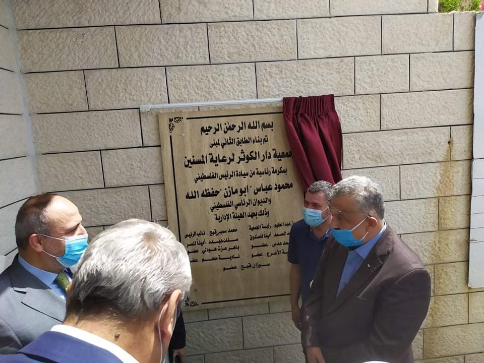 وأكد المحافظ أبو بكر على أهمية المبادرة الكريمة من الرئيس محمود عباس ” أبو مازن” ببناء الطابق الثاني من جمعية دار الكوثر، والذي أوفى بوعده استجابة لمناشدة الجمعية بعد مشاهدته تقريراً عن وضع الجمعية وحاجتها لمثل هذا الطابق، والذي من شأنه أن يساهم بتوسيع الخدمات المقدمة لكبارنا والذين نهتم برعايتهم والوقوف على احتياجاتهم، مثنياً على جهود رئيسة الجمعية والقائمين عليها على دورهم وعملهم.