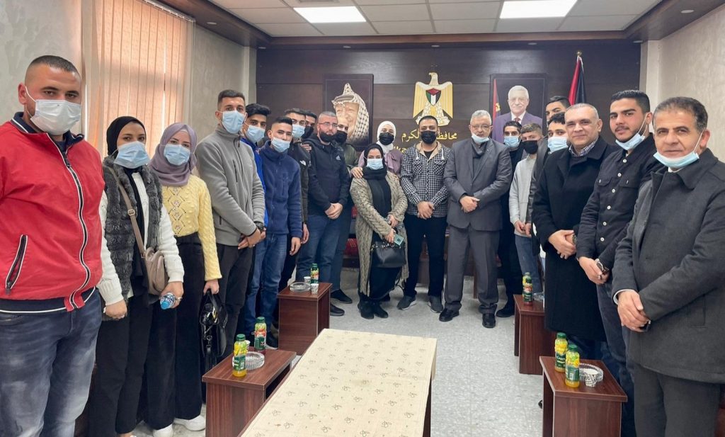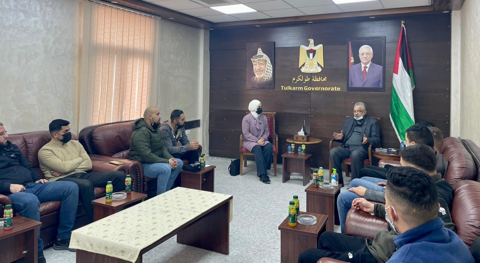 جانب من لقاء محافظ طولكرم عصام أبو بكر بدار المحافظة،مع وفد من حركة الشبيبة الطلابية ومجلس الطلبة بجامعة القدس المفتوحة فرع طولكرم، وذلك في إطار الإطلاع على مجموعة من الأنشطة والفعاليات والبرامج التي تسعى لتنظيمها خلال الفترة القادمة.