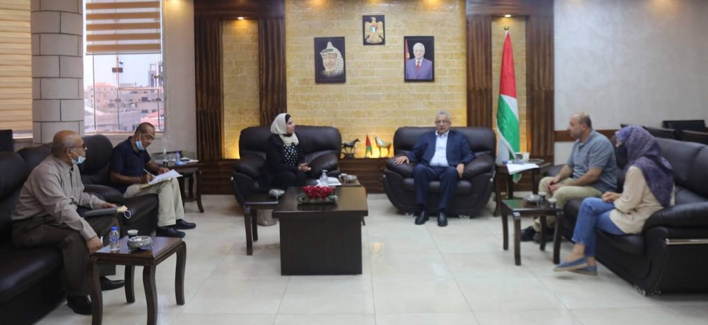 جانب من لقاء محافظ طولكرم عصام أبو بكر مع هنادي أبو طاقه رئيس مكتب الشمال لوكالة الغوث غوث وتشغيل اللاجئين، وبمشاركة كل من معتصم أبو تمام مدير مخيم طولكرم ونضال فحماوي مدير مخيم نور شمس، وبحضور فيصل سلامة رئيس لجنة خدمات مخيم طولكرم، حيث تم مناقشة عدد من المواضيع والقضايا المشتركة.