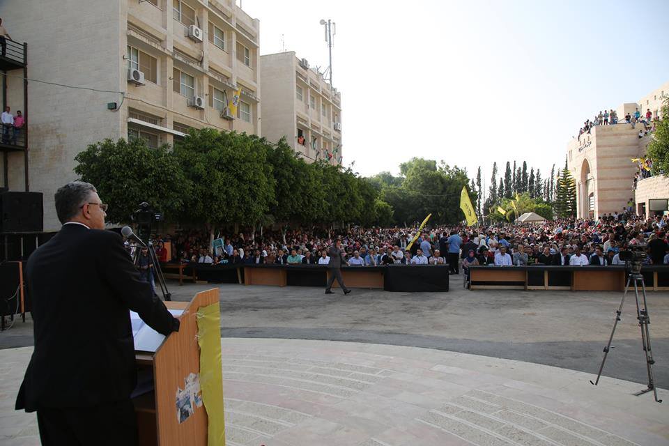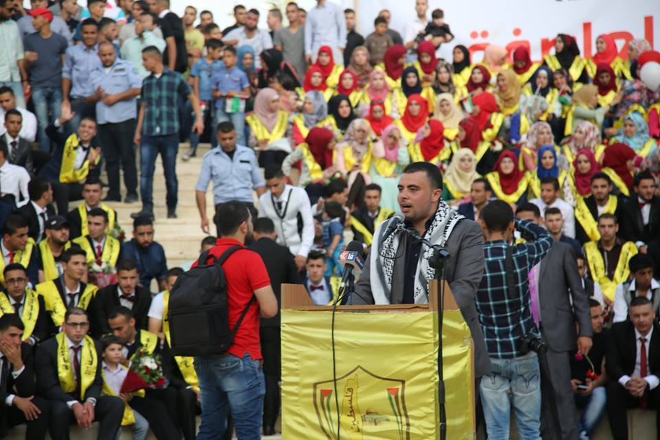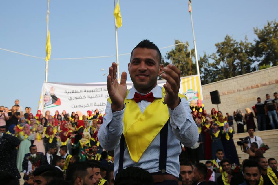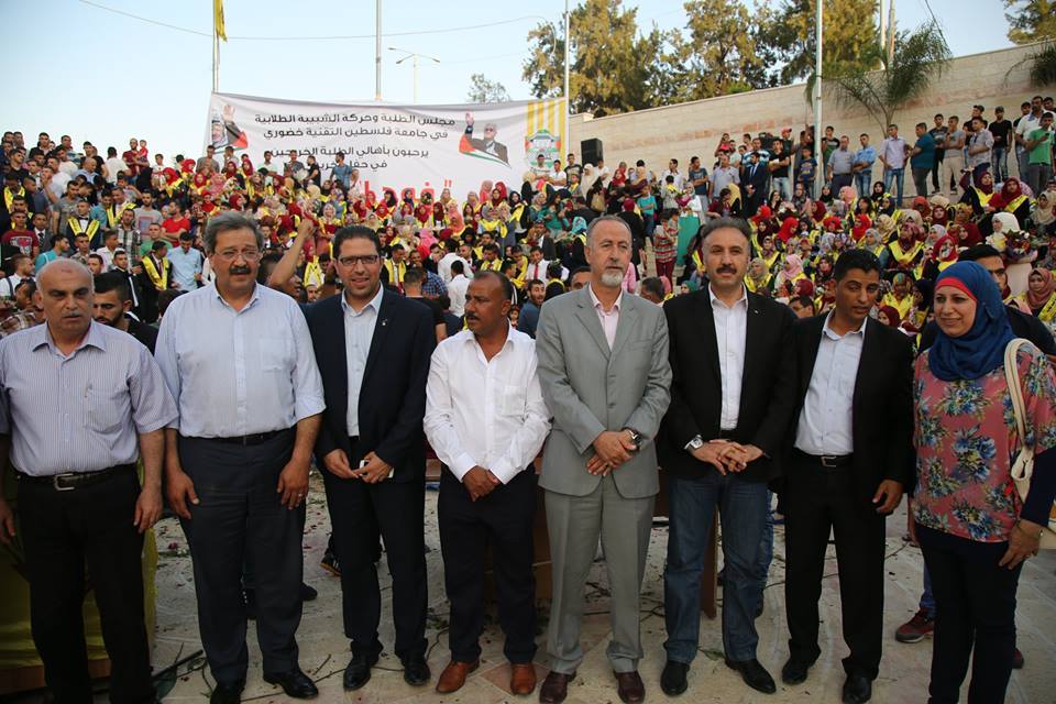طولكرم- نظم مجلس إتحاد الطلبة وحركة الشبيبة الطلابية في جامعة فلسطين التقنية خضوري حفل تخريج فوج العاصفة وذلك تحت رعاية محافظ طولكرم عصام أبو بكر وبمشاركة الناطق باسم حركة فتح أحمد عساف، إلى جانب حضور كل من أمين سر حركة فتح في طولكرم مؤيد شعبان وحسن فرج منسق الشبيبة الفتحاوية في الضفة و عصام معلا أمين سر حركة فتح في الولايات المتحدة الأمريكية ود. هشام شناعه ممثلاً عن إدارة الجامعة، وسط حضور أهالي الطلاب الخريجين.