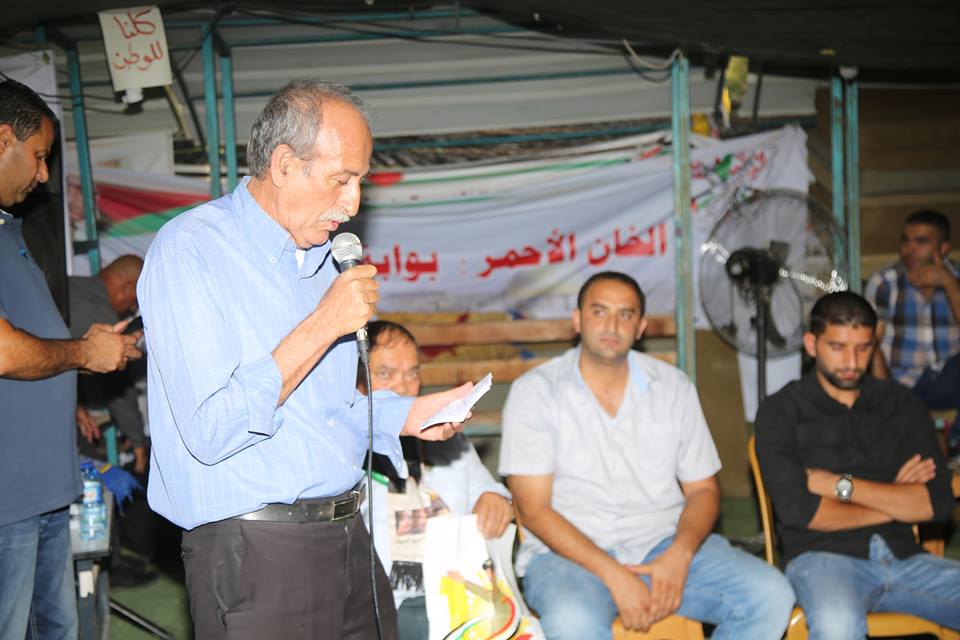 وعبر المحافظ أبو بكر عن شكره لهيئة مقاومة الجدار والاستيطان وطاقمها، والأهل الصامدين في الخان الأحمر، وأقاليم حركة فتح، وإقليم القدس وجميع المؤسسات على ما يقدمونه من روح وطنية عاليةً، للدفاع عن أهالي الخان الأحمر وتثبيتهم على أرضهم.