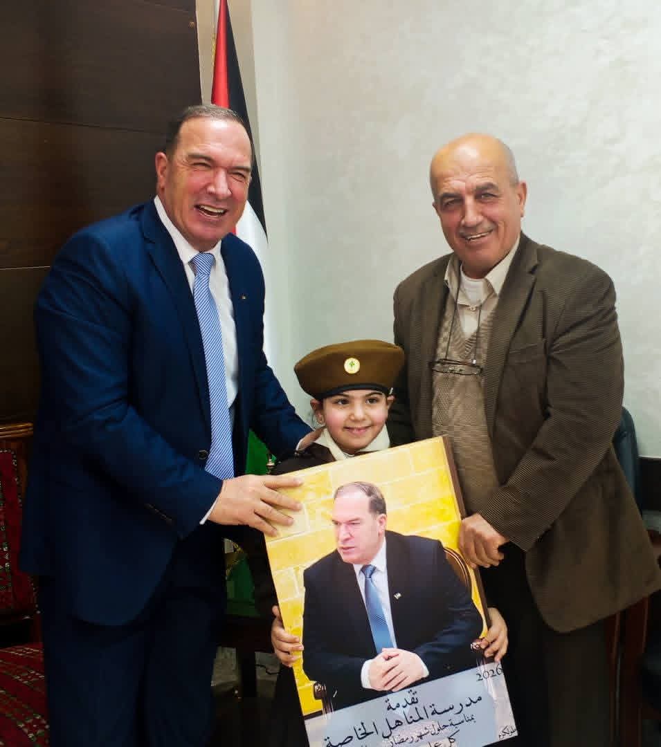 طولكرم – ١٥-٢-٢٠٢٦ استقبل محافظ طولكرم اللواء د. عبد الله كميل، في دار المحافظة، وفداً من أطفال فريق الكشافة من مدرسة المناهل الخاصة، وذلك بحضور مدير المدرسة سيف الدين عمر، ومشرفة الكشافة يارا الأشقر، وذلك في إطار تقديم التهاني للمحافظ اللواء د. كميل بمناسبة قرب حلول شهر رمضان الفضيل.
