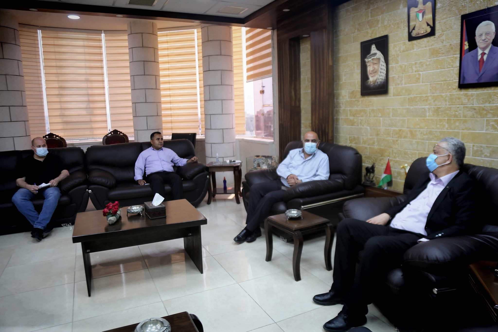 محافظ طولكرم عصام أبو بكر خلال إستقبال م. امجد جبر المدير الجديد لسلطة جودة البيئة بطولكرم، بعد تسلمه مهام عمله مؤخرا، وذلك بحضور كل من مراد المدني المستشار القانوني، وهادية أبو رية من العلاقات العامة، وبمشاركة الجهات المختصة بمؤسسة المحافظة.