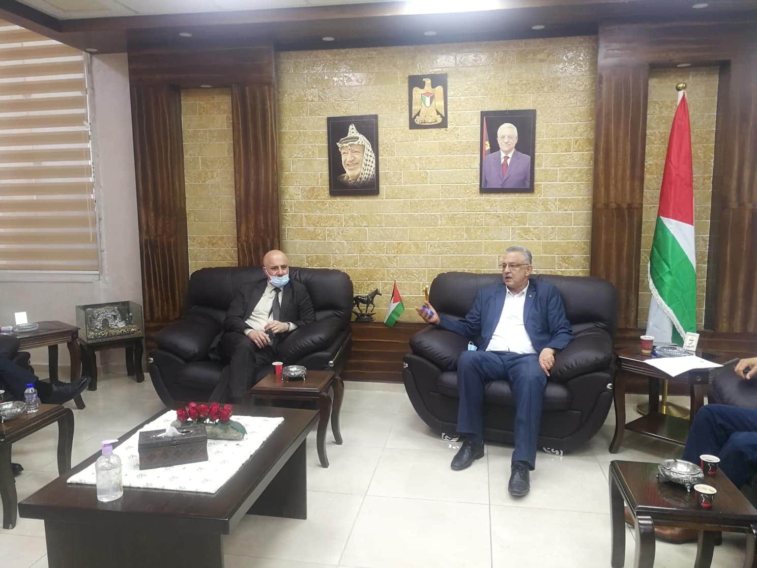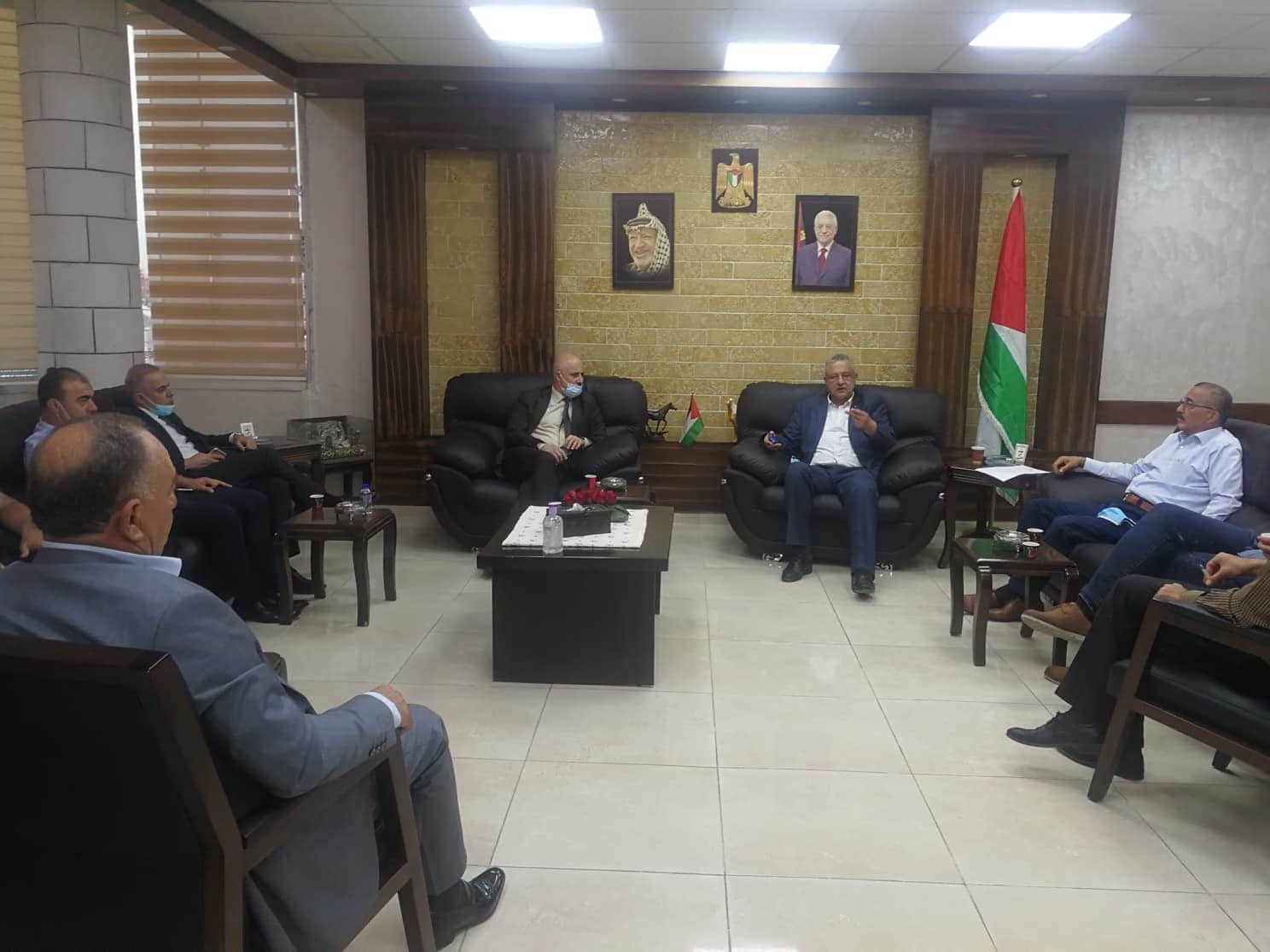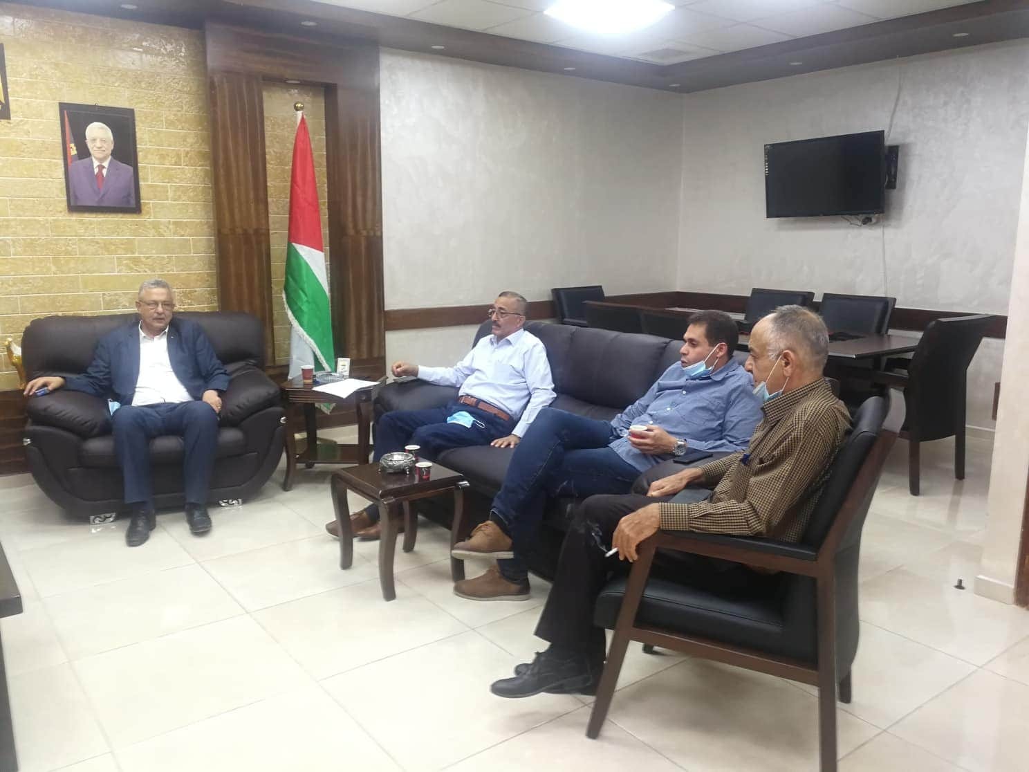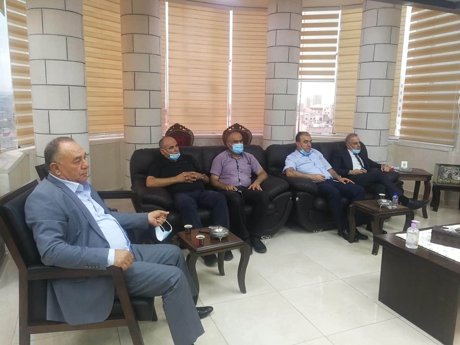 محافظ طولكرم عصام أبو بكر خلال إستقباله رئيس غرفة تجارة طولكرم إبراهيم أبو حسيب وأعضاء الغرفة التجارية، والذين قدموا التهاني للمحافظ بالشفاء بعد إجراء عملية زراعة الشبكية، مهنئين بحلول عيد الأضحى المبارك.