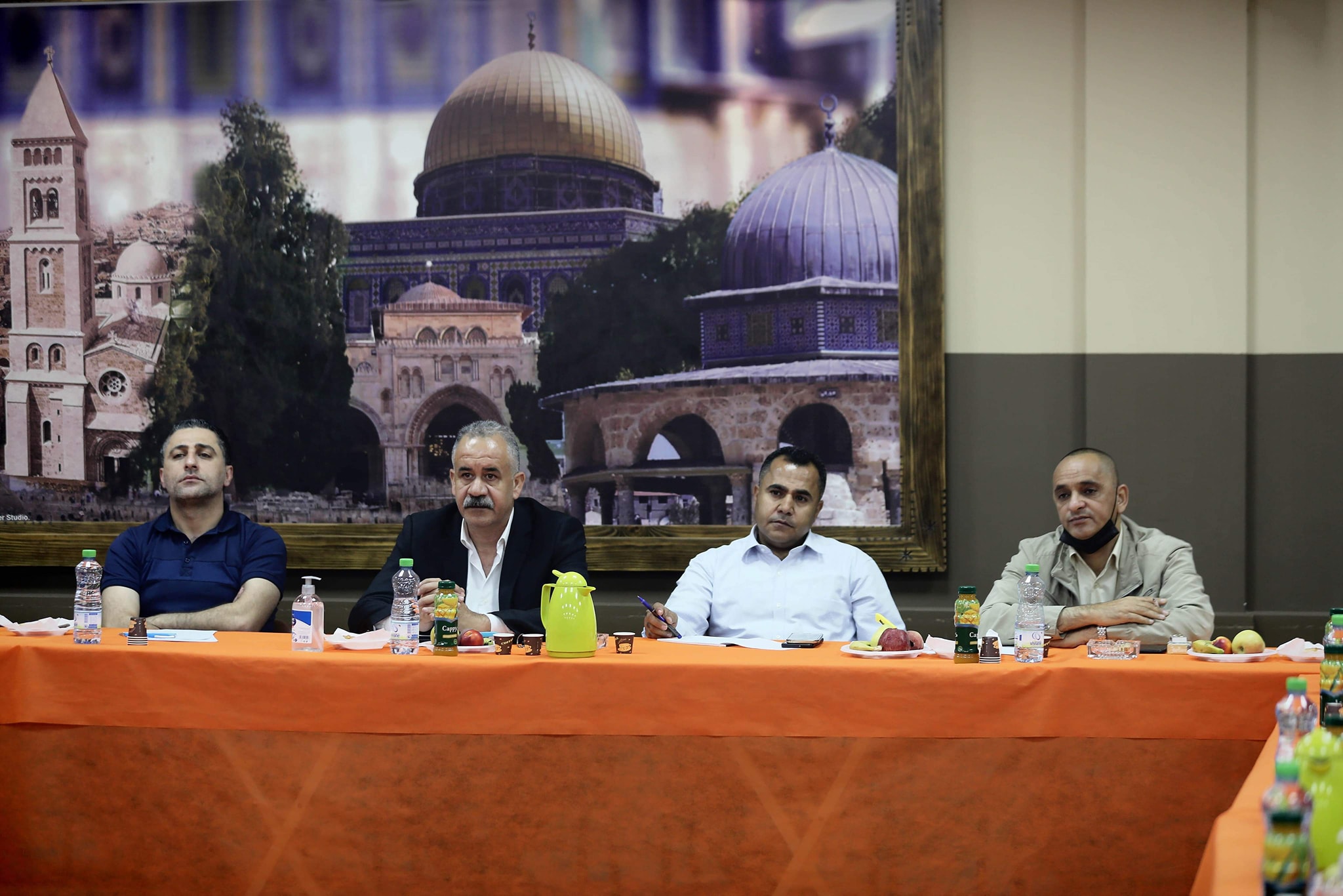 محافظ طولكرم عصام أبو بكر خلال الإجتماع مع لجنة الطوارئ