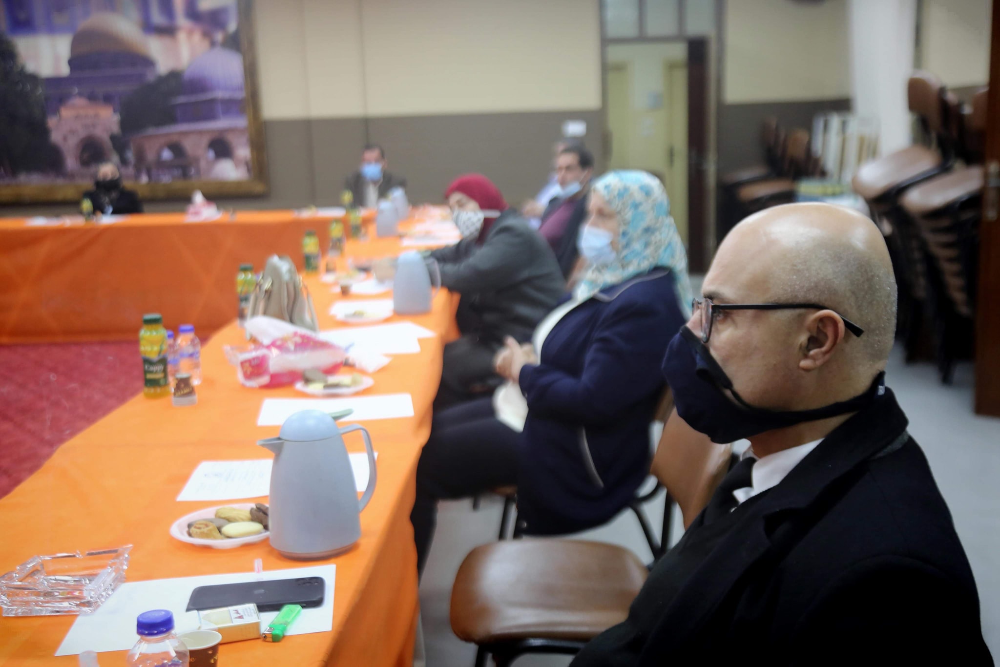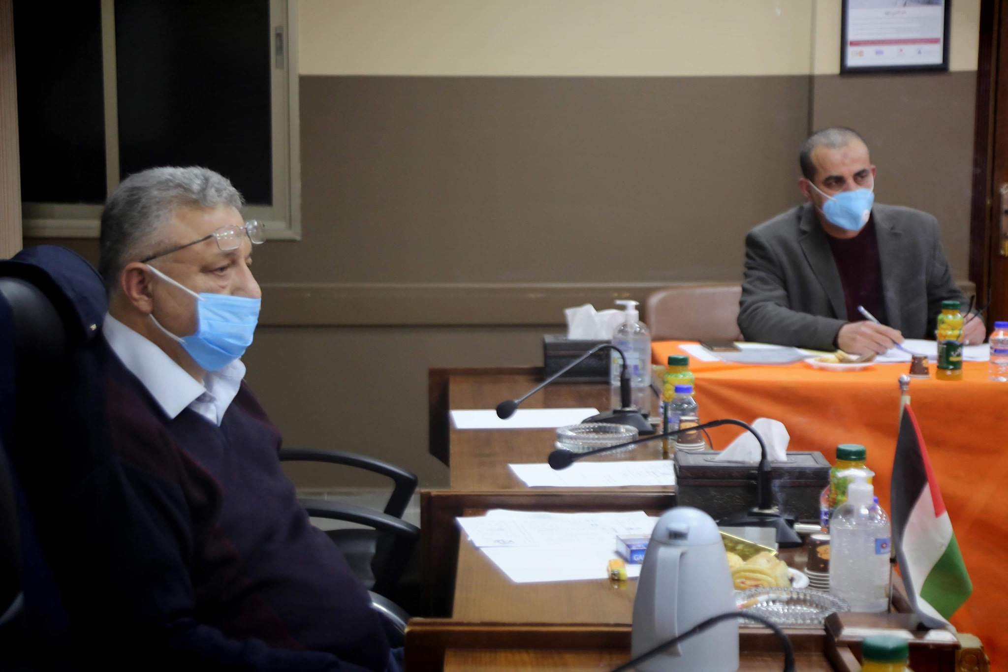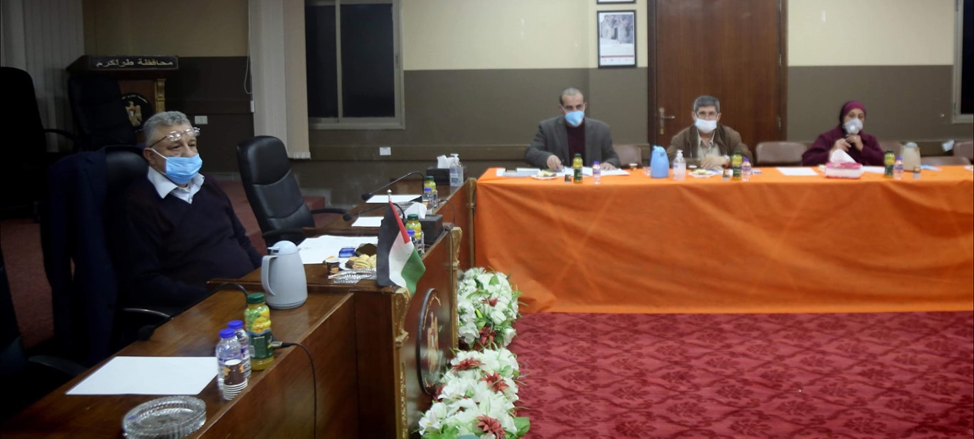 محافظ طولكرم عصام أبو بكر خلال ترأس إجتماع لجنة صندوق التكافل الخيري، وذلك في إطار المتابعة المستمرة لعمل الصندوق والبرامج المنفذة، والبرامج المقترحة خلال الفترة القادمة.