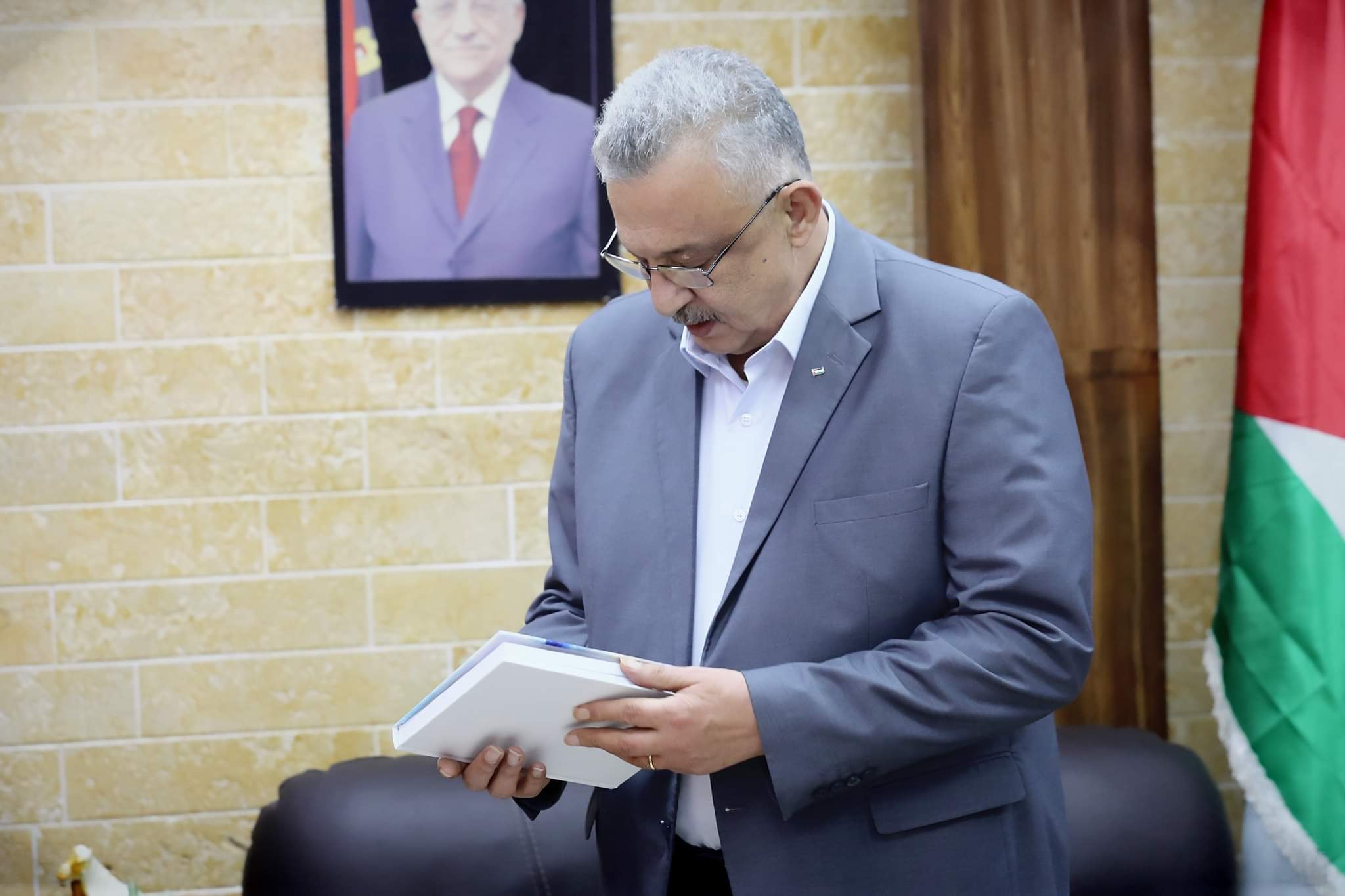 محافظ طولكرم عصام أبو بكر خلال تسلمه من الدفاع المدني بطولكرم كتاب ” الكود الفلسطيني للوقاية والحماية من الحريق” والذي أعده الفريق الوطني لإعداد كود البناء الفلسطيني.