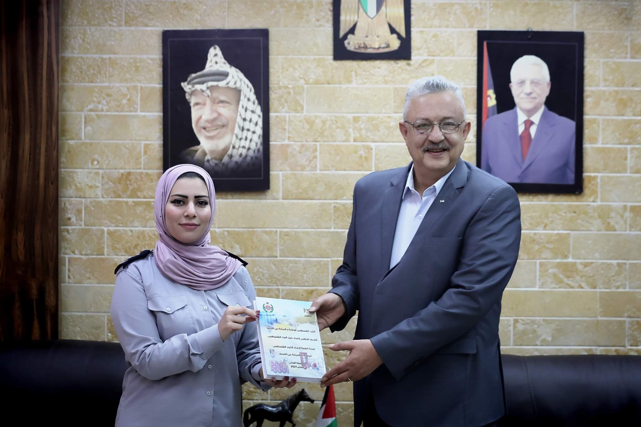 هذا وقدمت الرائد م. تالا جلاد للمحافظ أبو بكر شرحاً عن ما يتضمنه كتاب الكود الفلسطيني للوقاية والحماية من الحريق، وعملية إعداد الكتاب وأهميته ودوره بإجراءات السلامة العامة.
