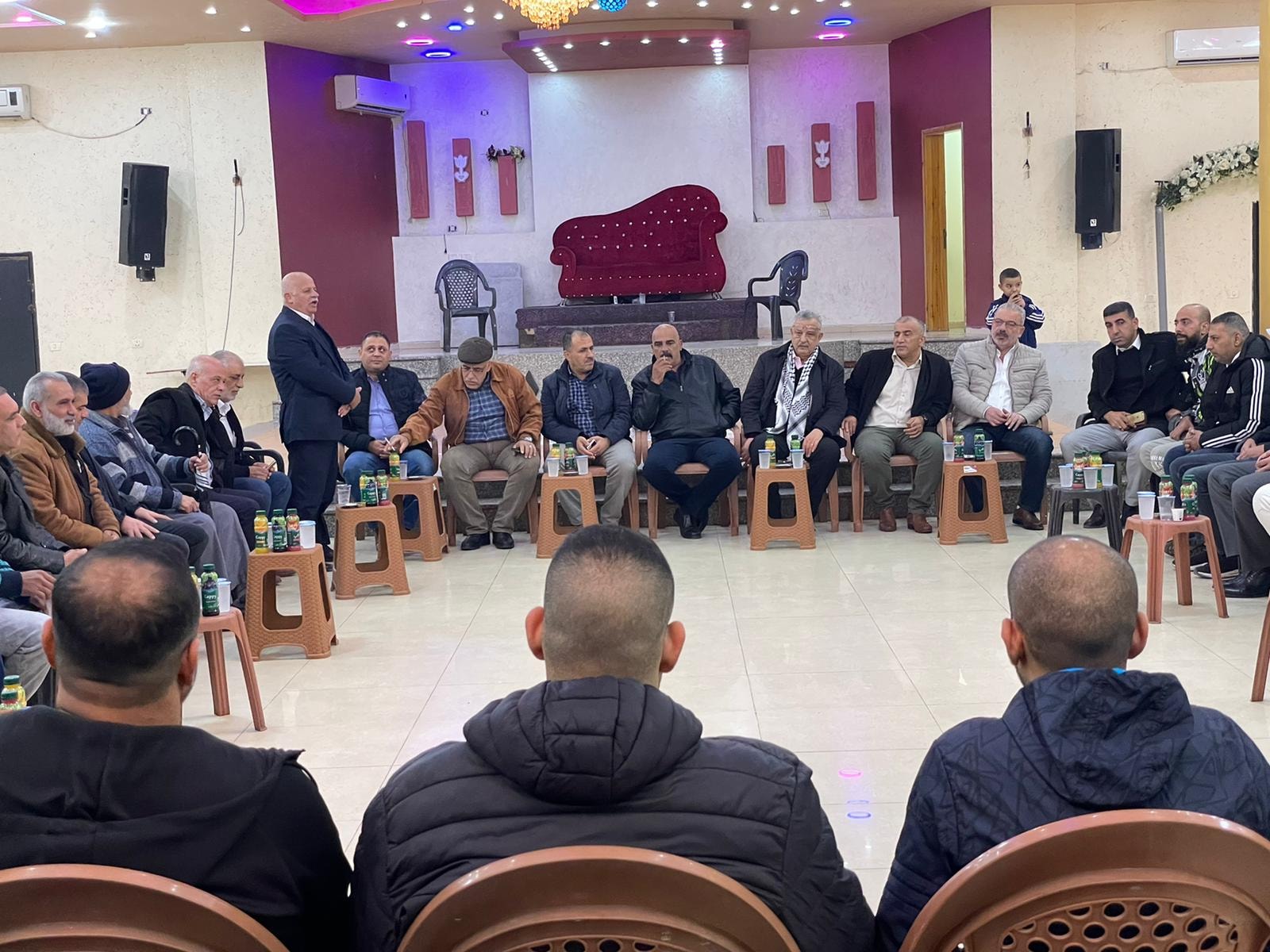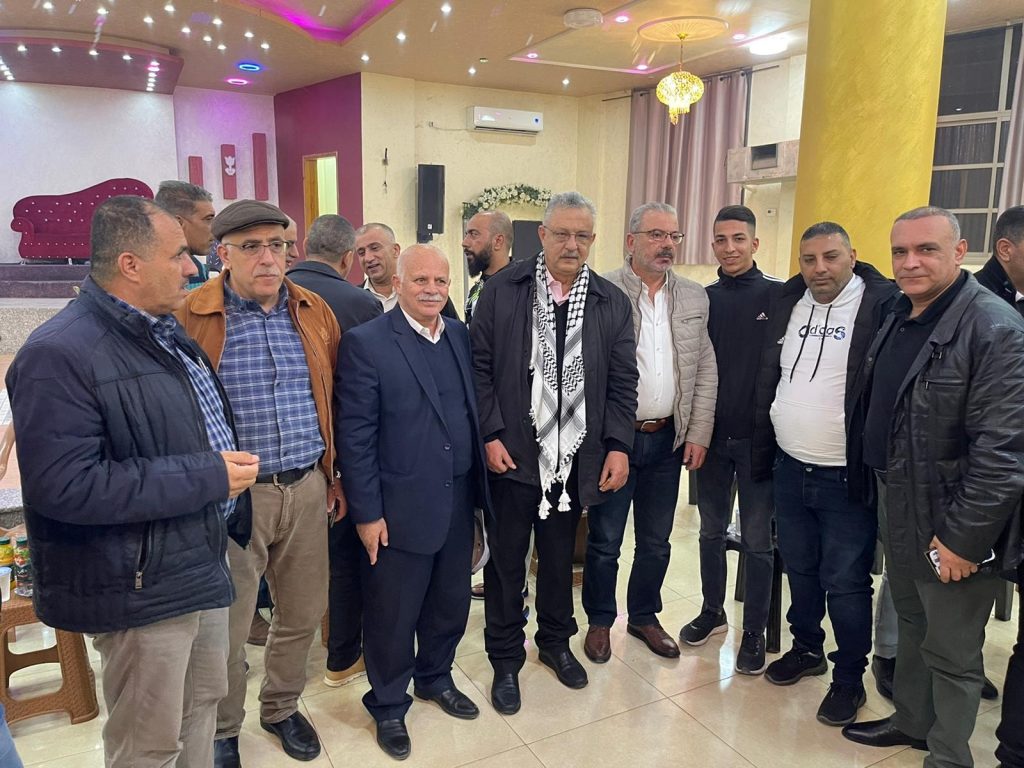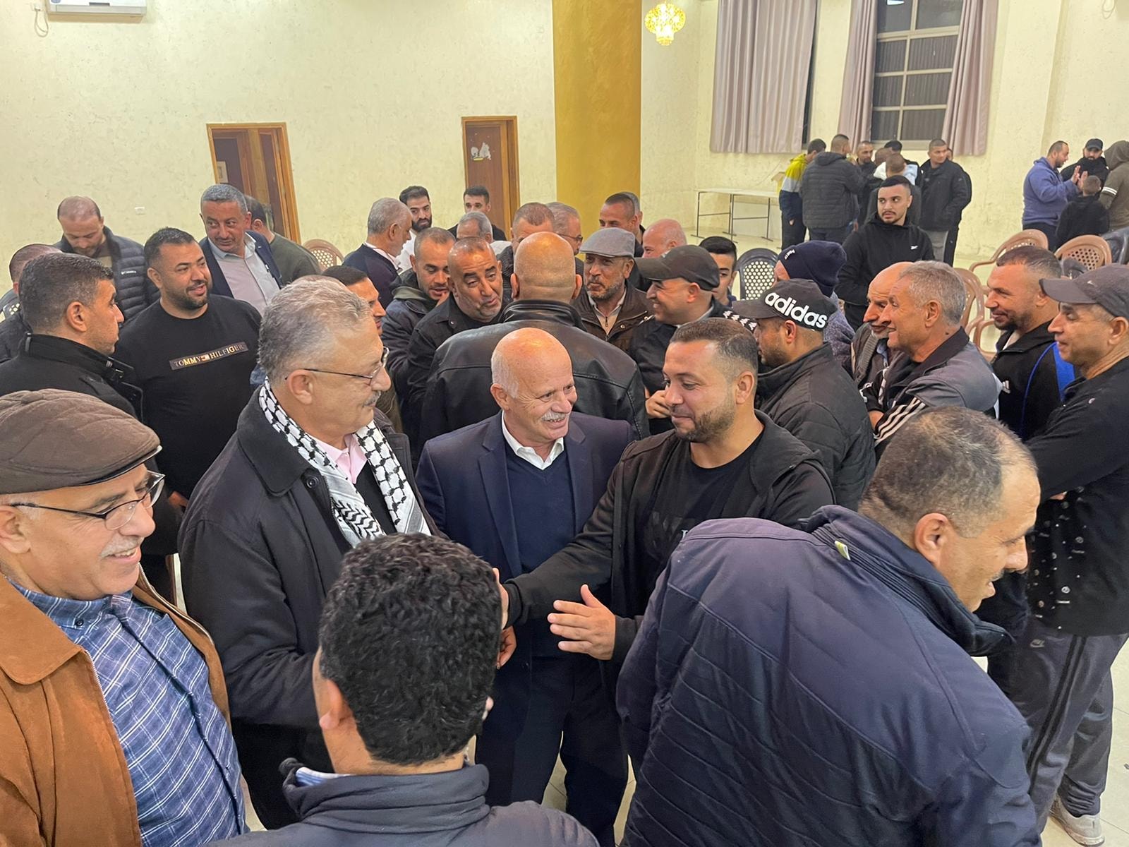 محافظ طولكرم عصام أبو بكر وبمشاركة قائد المنطقة العميد جمال أبو العز ومدراء الأجهزة الأمنية، وأمين سر فتح بطولكرم إياد جراد، خلال تقديم التهاني بالإفراج للأسير أحمد ابو طبيخ من مخيم نور شمس.