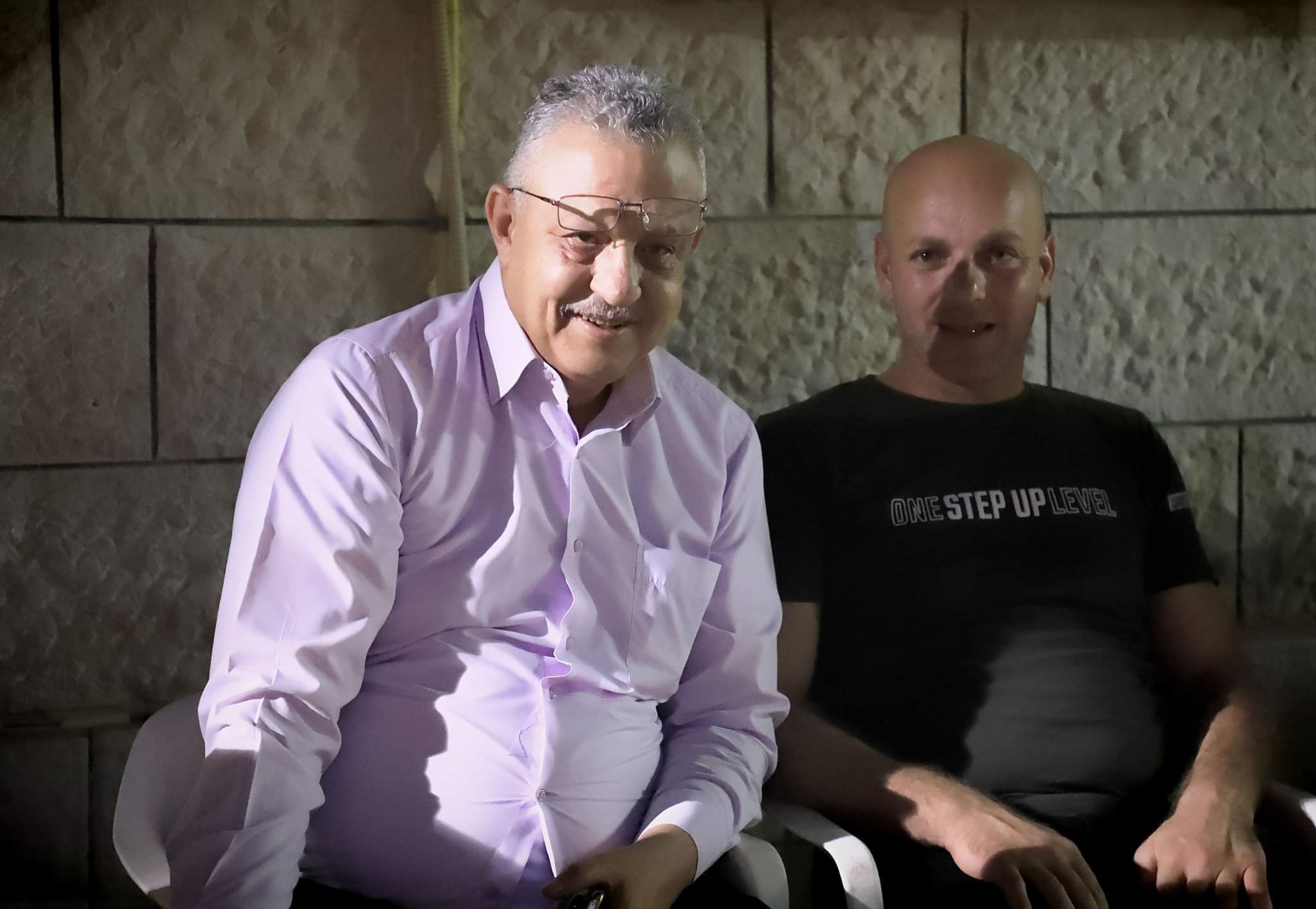 محافظ طولكرم عصام أبو بكر خلال زيارة الأسير المفرج عنه من سجون الإ حتلال جهاد سعادة والذي امضى٢٠ عاما