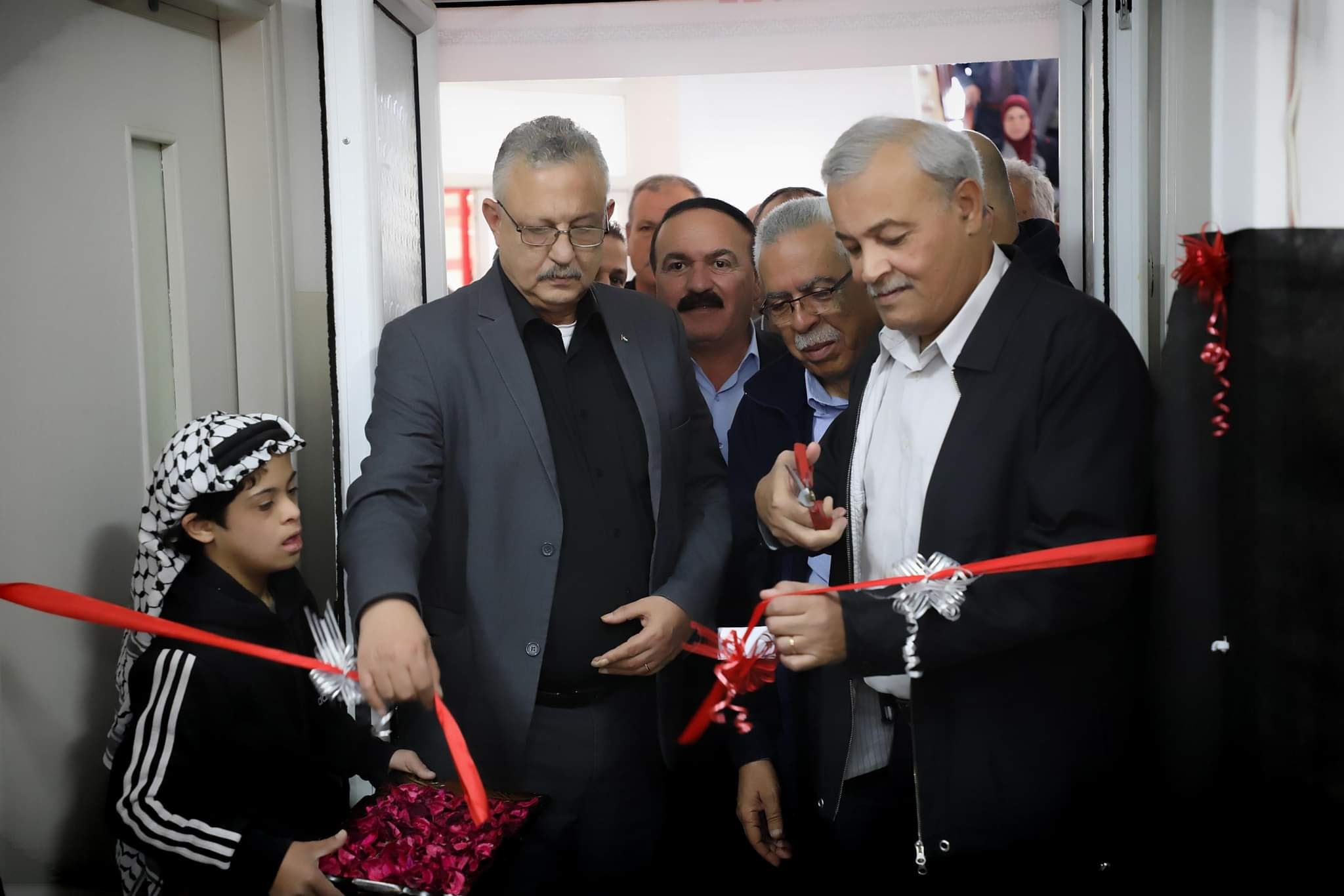 محافظ طولكرم عصام أبو بكر ورئيس جمعية الهلال الأحمر يونس الخطيب يفتتحان معرض منتجات مراكز التأهيل