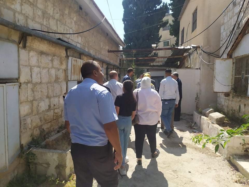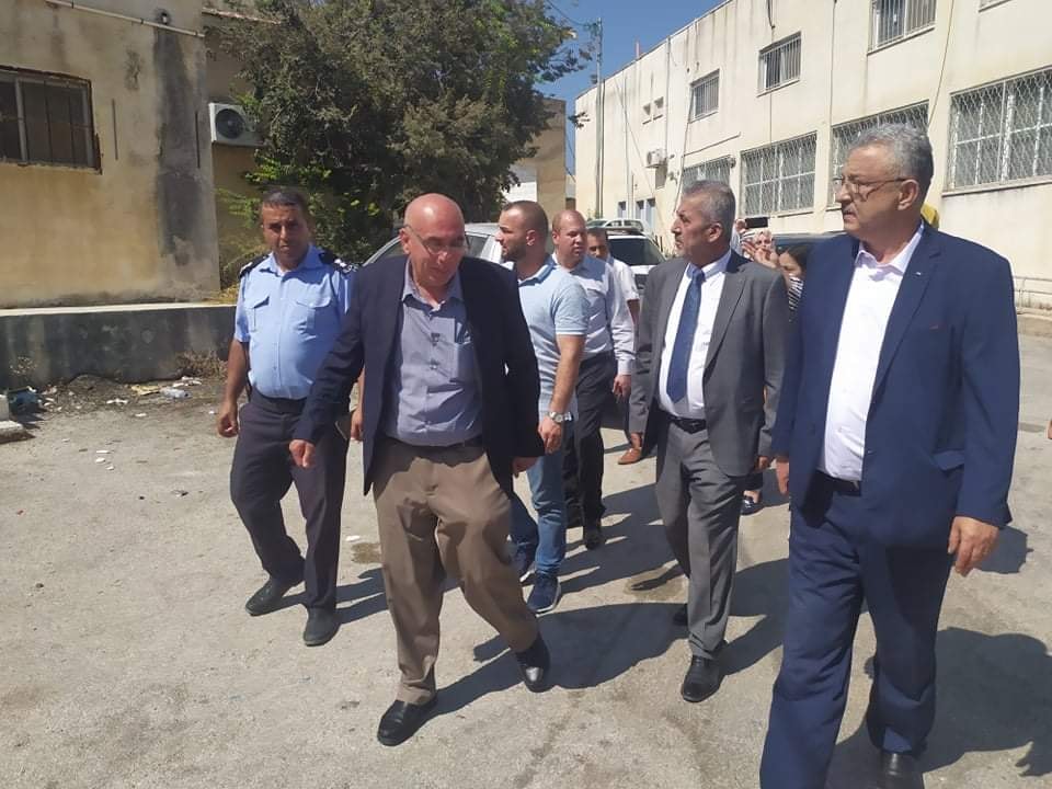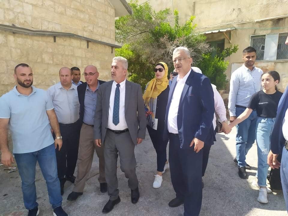 محافظ طولكرم عصام أبو بكر ووزير الحكم المحلي م. مجدي الصالح خلال تفقد مجمع المديريات الحكومية بطولكرم