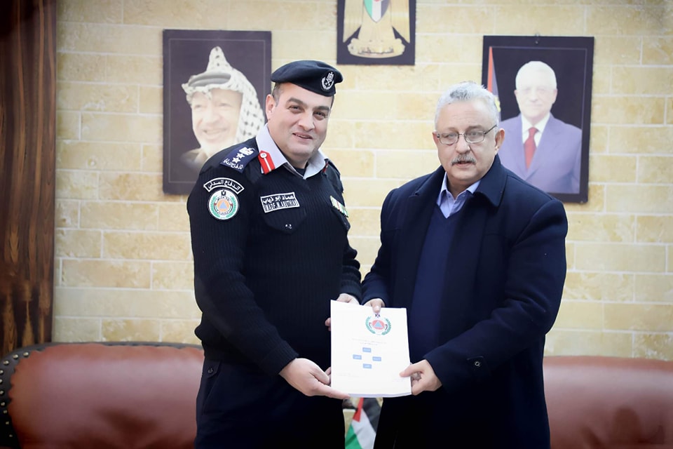 محافظ طولكرم عصام أبو بكر يتسلم من مدير الدفاع المدني خطة آلية الاستجابة للطوارئ لعام 2023