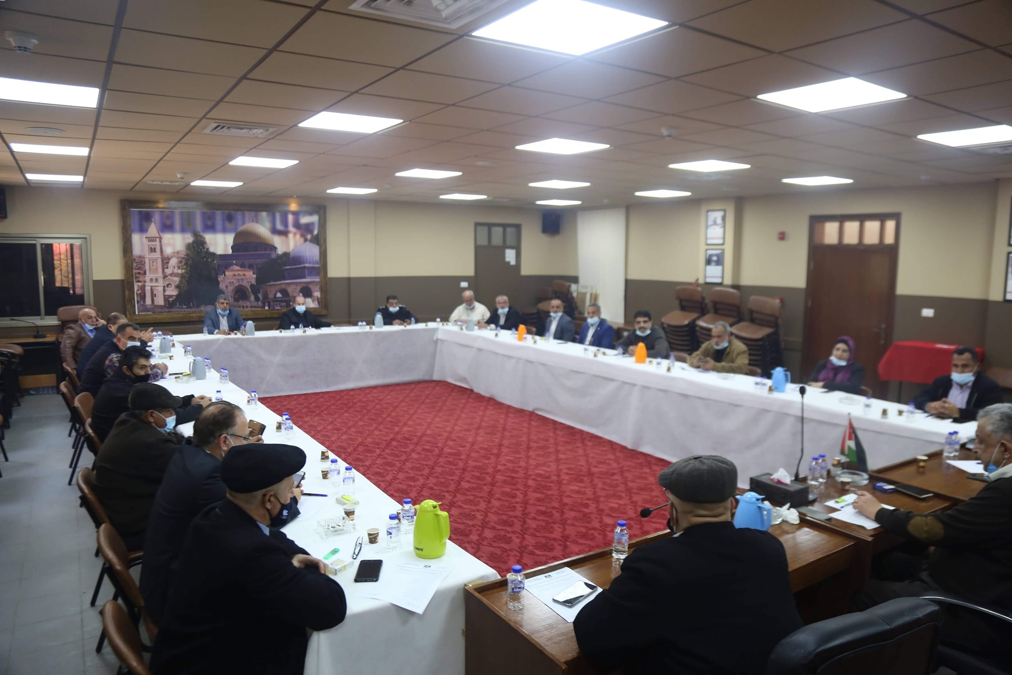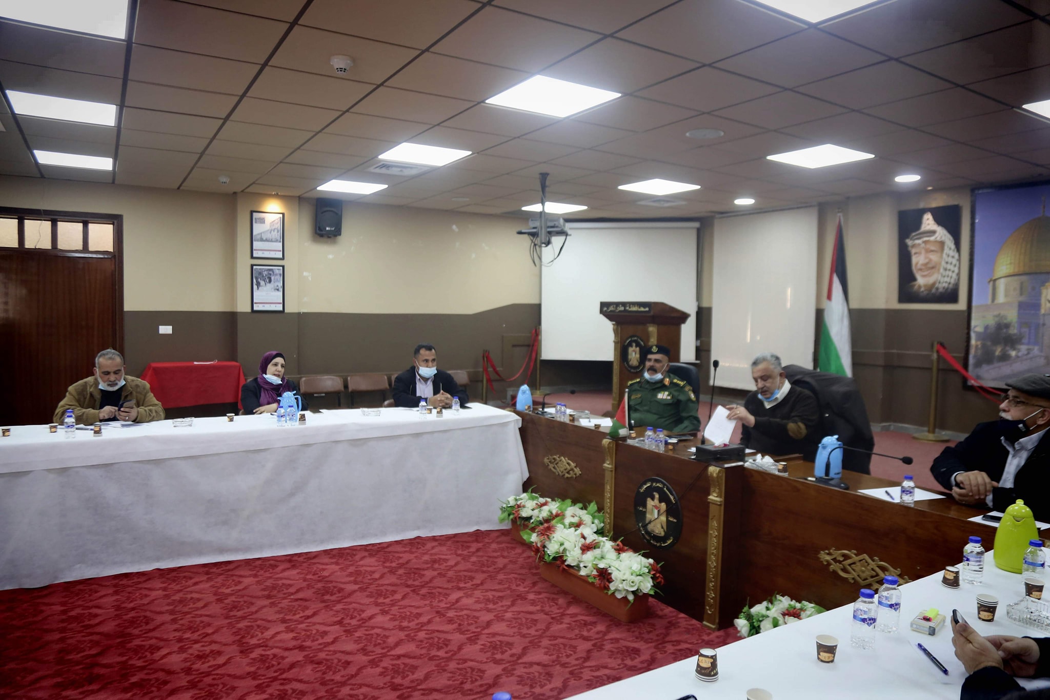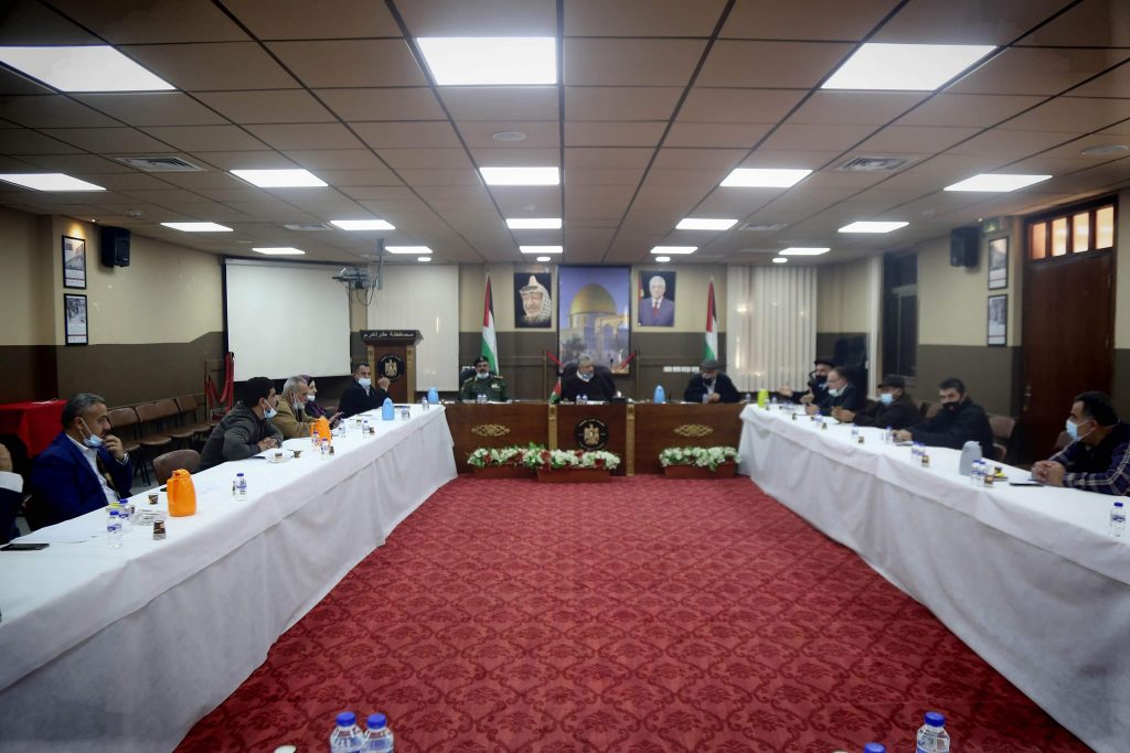 طولكرم – اجتمع محافظ طولكرم عصام أبو بكر في دار المحافظة مع لجنة الطوارئ للحد من تفشي فيروس كورونا، وذلك خلال الاجتماع الدوري، وفي إطار المتابعة للإجراءات الجديدة التي أعلنت عنها الحكومة للحد من تفشي الوباء والوقاية من الفيروس.