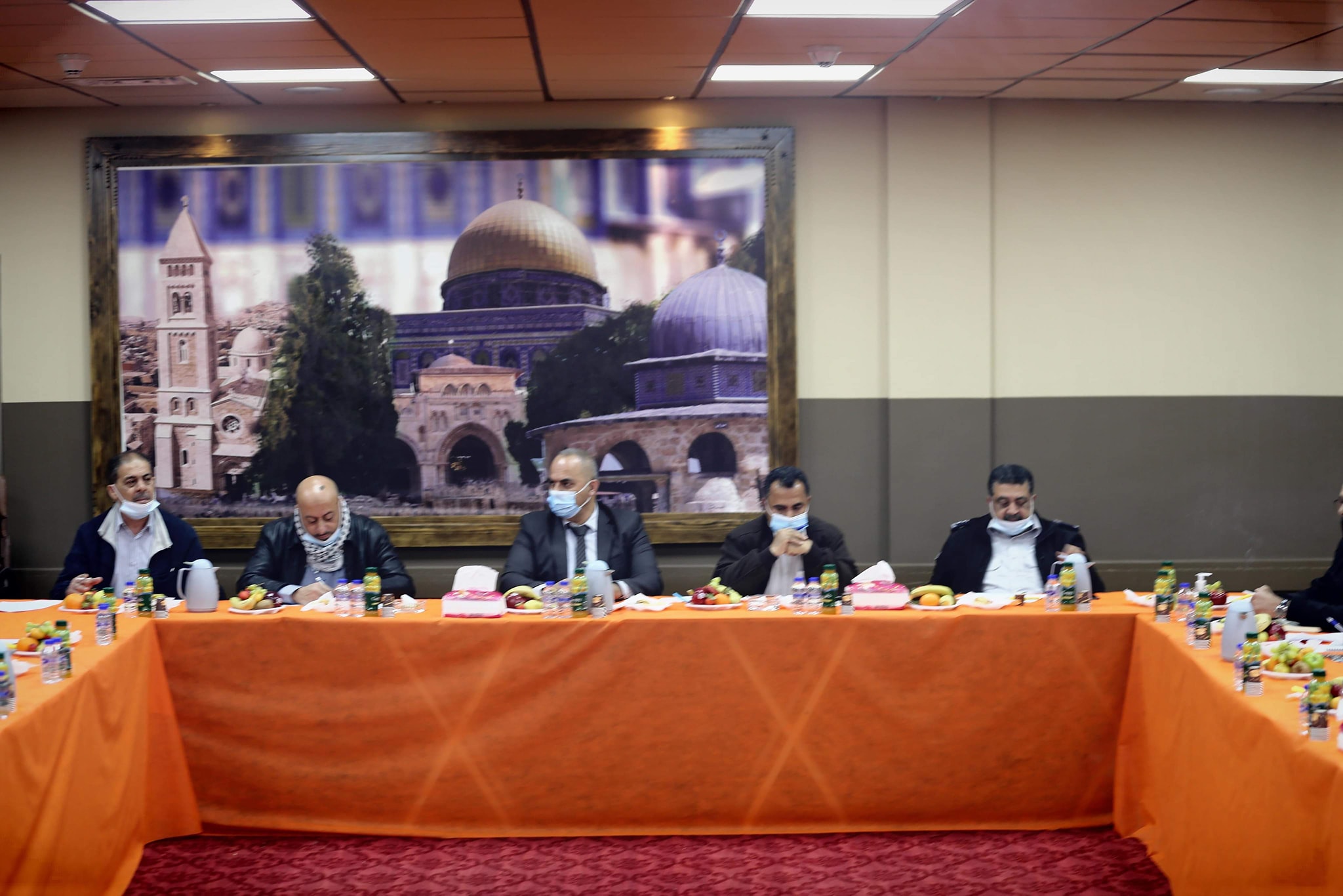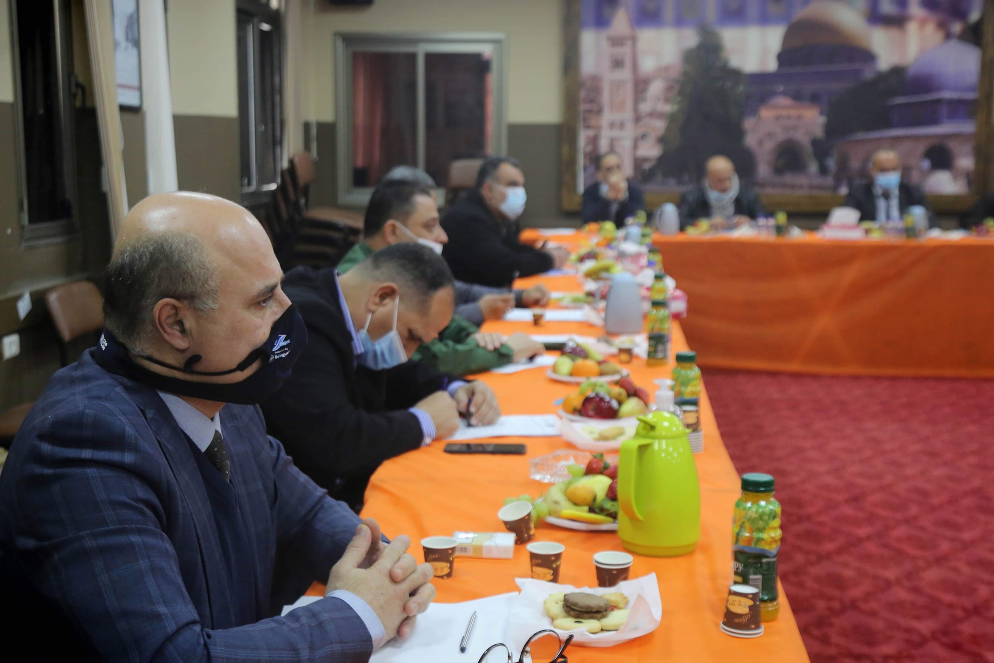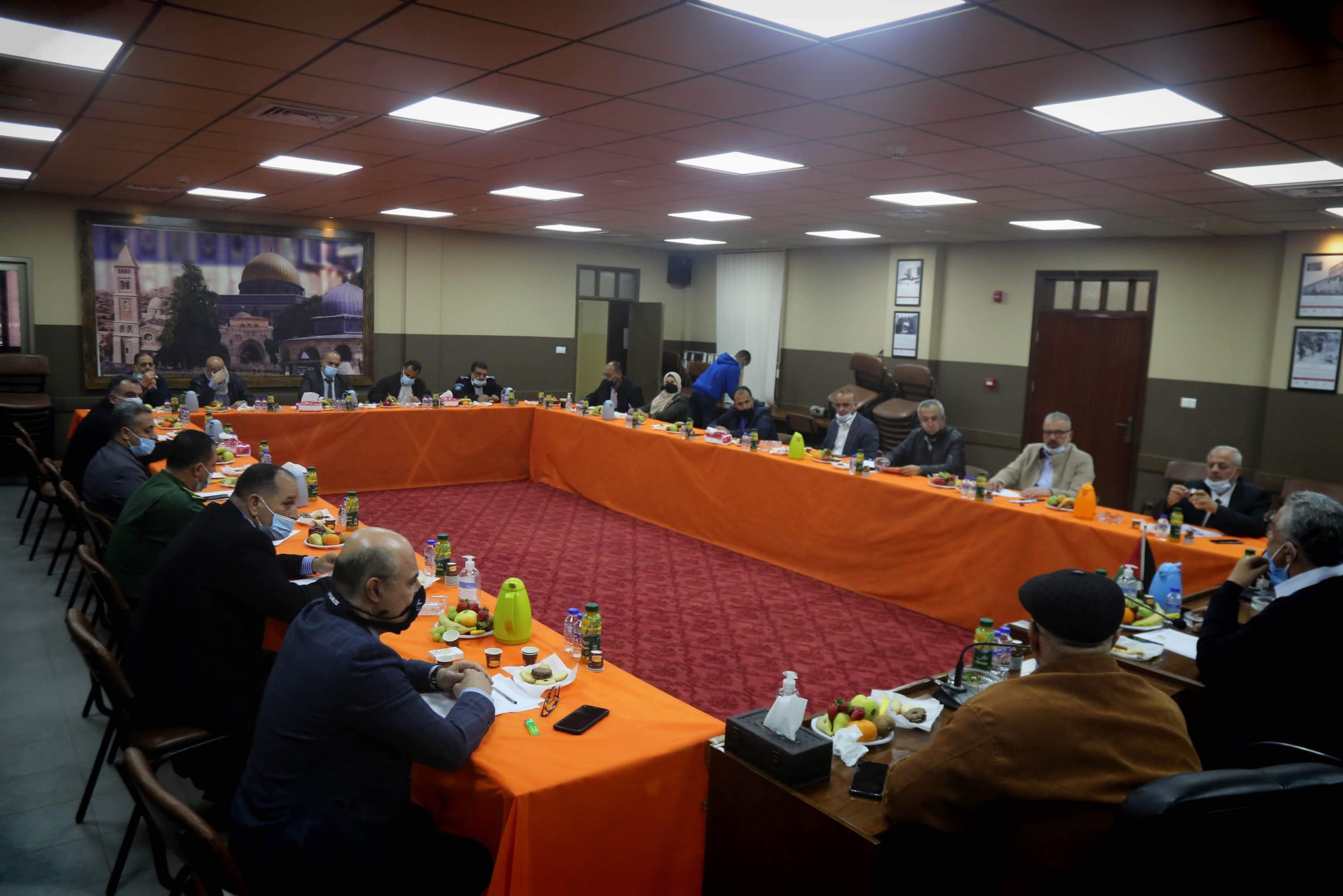 طولكرم- إجتمع محافظ طولكرم عصام أبو بكر في دار المحافظة مع لجنة الطوارئ للحد من تفشي فيروس كورونا، وذلك خلال اللقاء الدوري، وفي إطار المتابعة المستمرة وتطبيق الإجراءات الوقائية لمواجهة إنتشار فيروس كورونا.