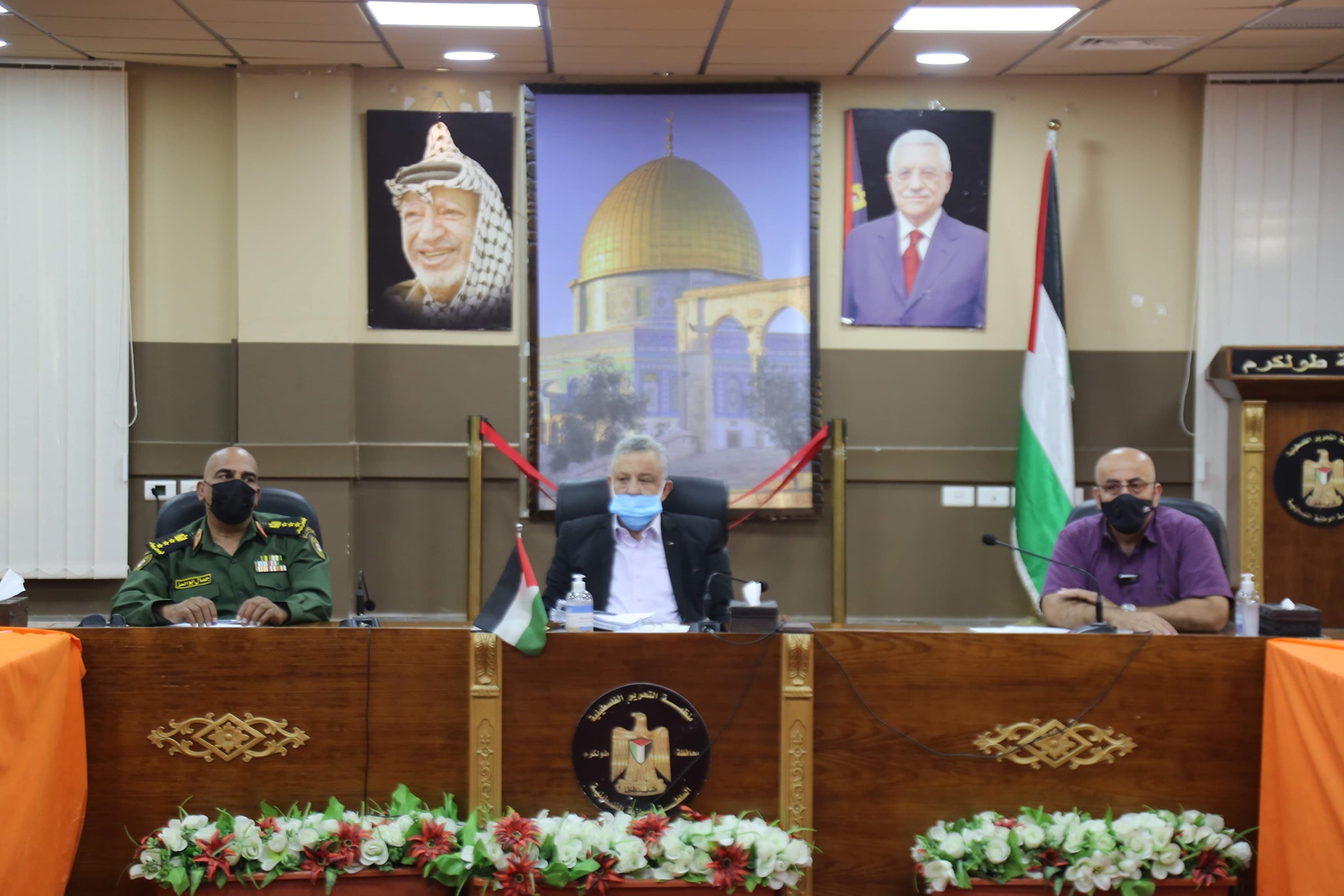 طولكرم – اجتمع محافظ طولكرم عصام أبو بكر بدار المحافظة مع لجنة الطوارئ للحد من تفشي فيروس كورونا، وذلك خلال الاجتماع الدوري.