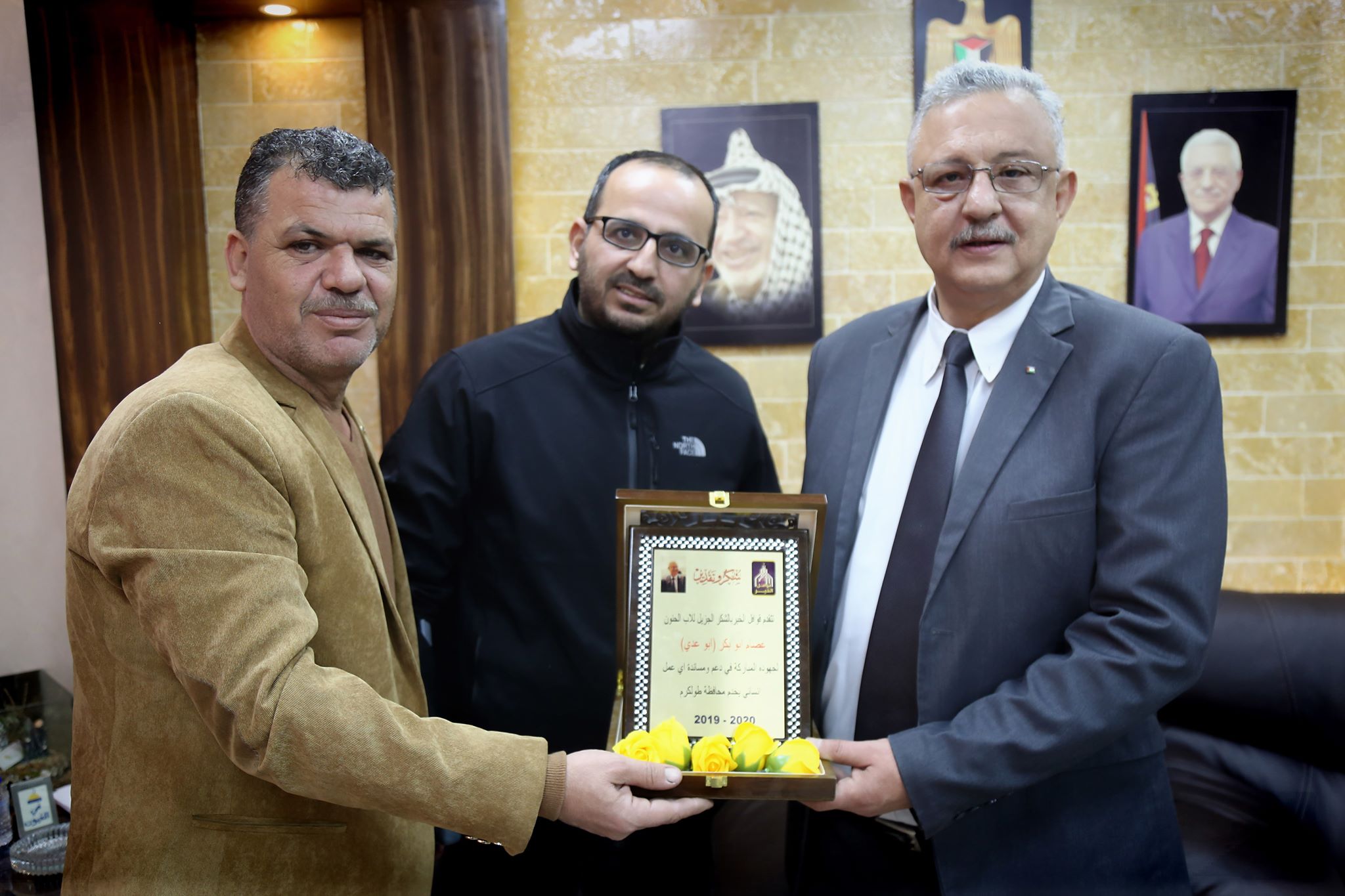 هذا وقدم كلٌ من حسام عارف، ورائد القدومي، درعاً للمحافظ أبو بكر تقديراً على دوره في مساندة العمل الإنساني، مثمنين تلك الجهود التي يبذلها المحافظ في خدمة المواطنين والوقوف إلى جانبهم، مقدمين شرحاً عن ما أنجزته قوافل الخير من عمل إنساني في خدمة من هم بأمس الحاجة للمساعدة والمساندة.
