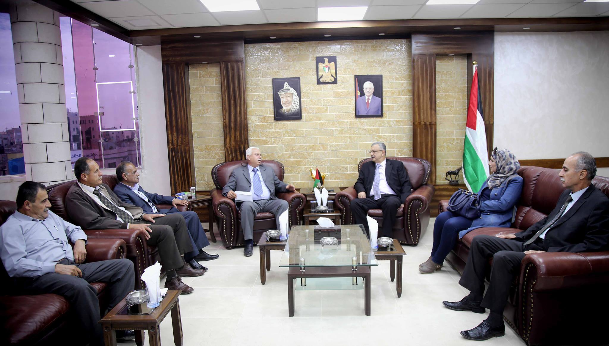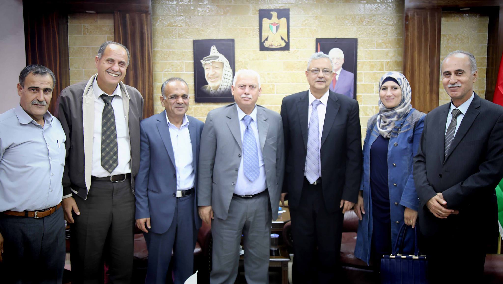 طولكرم- إستقبل محافظ طولكرم عصام أبو بكر بدار المحافظة رئيس بلدية طولكرم فريد أبو عقل والاعضاء وذلك بعد مزاولة مهام الأعمال بناءً على قرار مجلس الوزراء، حيث بارك المحافظ أبو بكر للأعضاء الجدد، متمنياً لهم التوفيق بمسؤوليات العمل الملقاة على عاتقهم، مثمناً جهود المجلس البلدي السابق في خدمة المدنية، مؤكداً على الدور المحوري لبلدية طولكرم لكونها البلدية المركزية بالمحافظة.