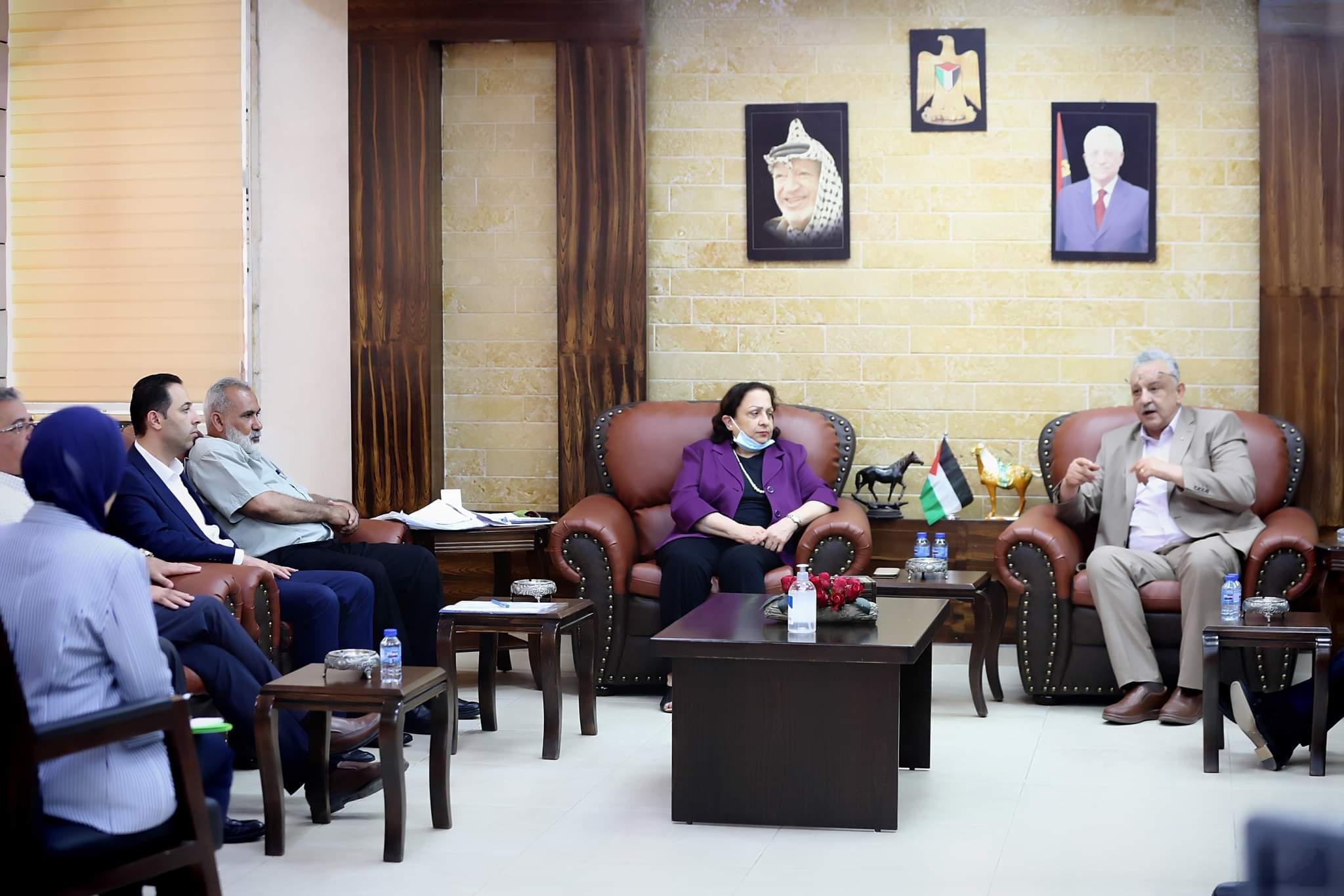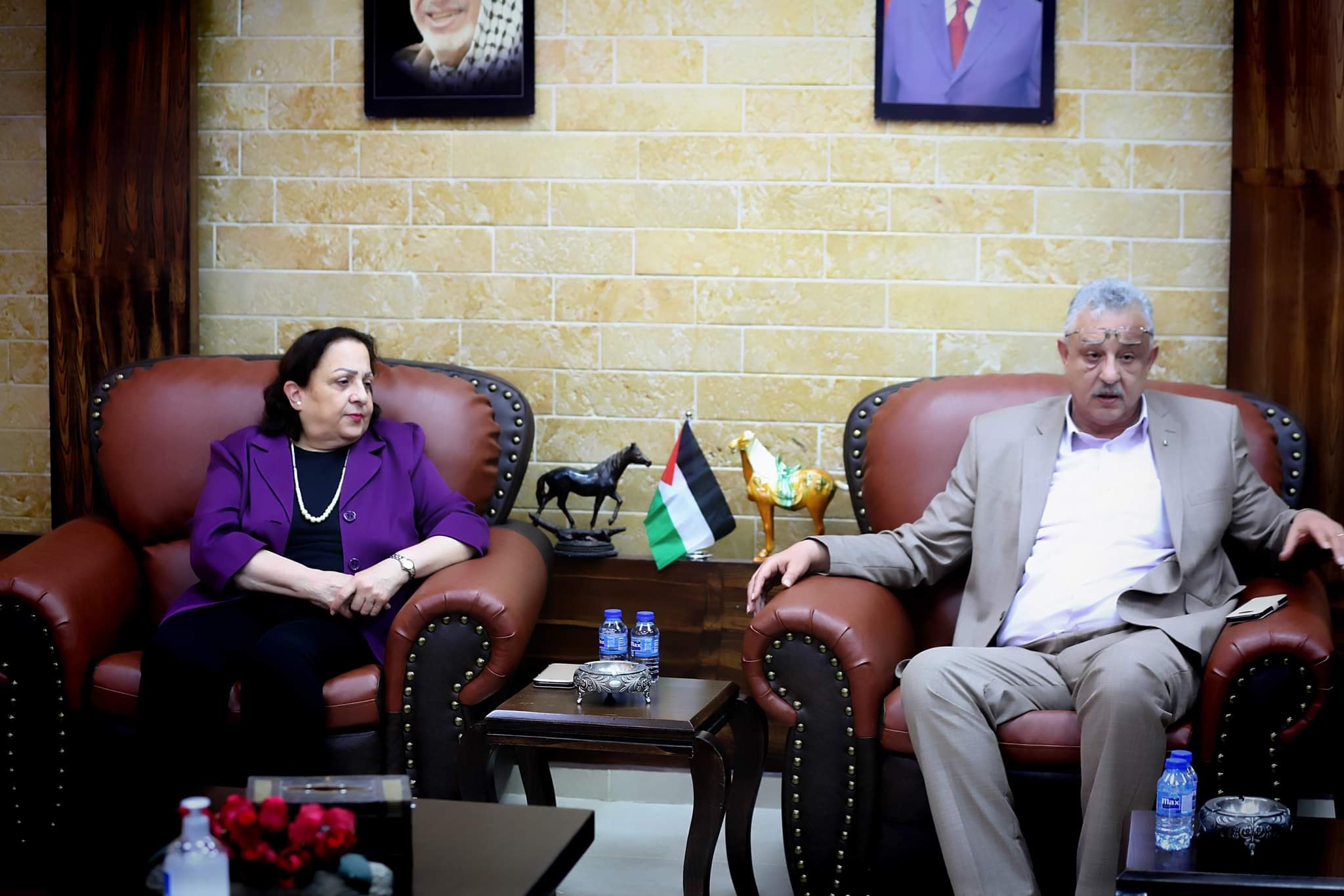 محافظ طولكرم اللواء د. كميل يستقبل وزيرة التنمية والإغاثة د. حمد ويناقشان مجموعة من القضايا