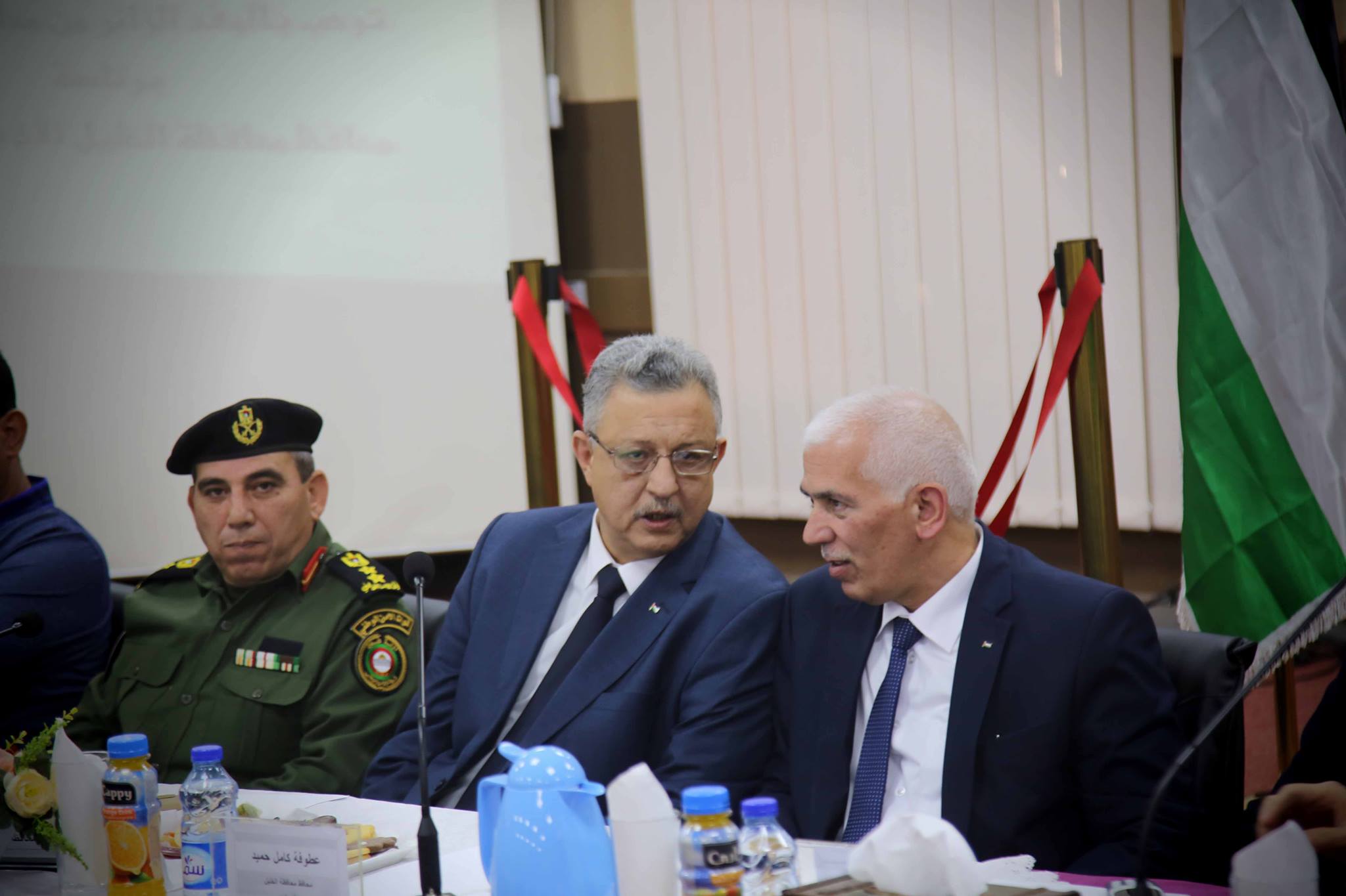 وأشار المحافظ أبو بكر إلى دعم رئيس الوزراء د. رامي الحمد الله واستحسانه لفكرة الزيارات التي تهدف إلى توثيق التواصل على كافة المجالات العلمية والاقتصادية والوطنية والثقافية، موضحاَ أن إستراتيجية اللقاءات المتبادلة ما بين المحافظات يهتم بها مستشار الرئيس لشؤون المحافظات اللواء الحاج إسماعيل جبر وذلك ضمن توثيق الشراكة، وتحديداً بما يتعلق بدعم إسناد جامعة فلسطين التقنية ” خضوري” وفرع الجامعة في العروب.