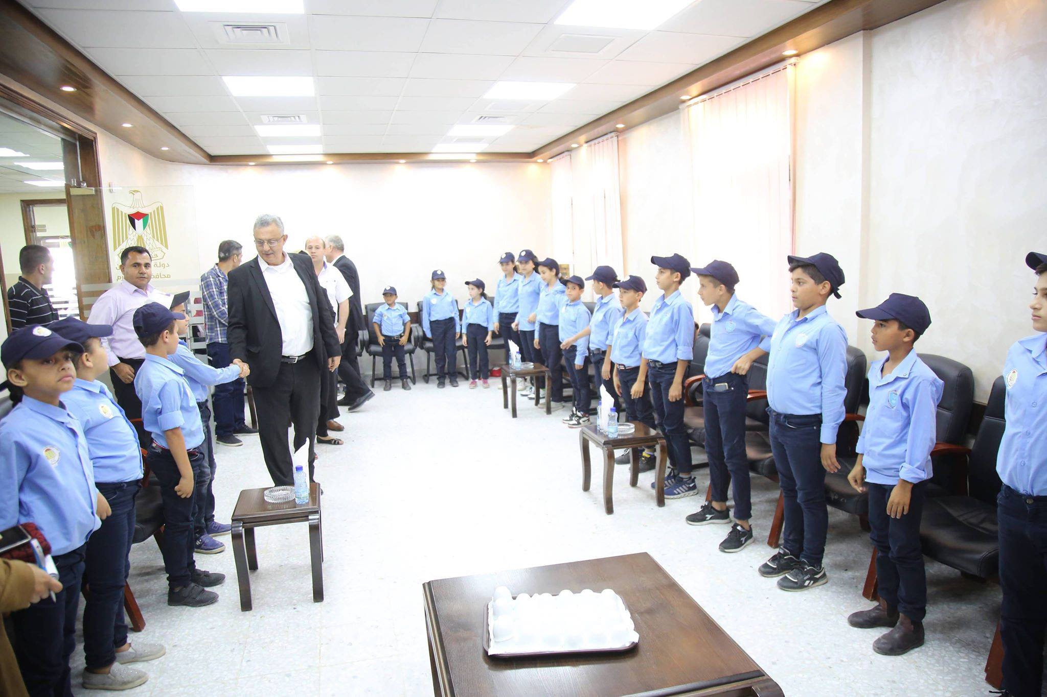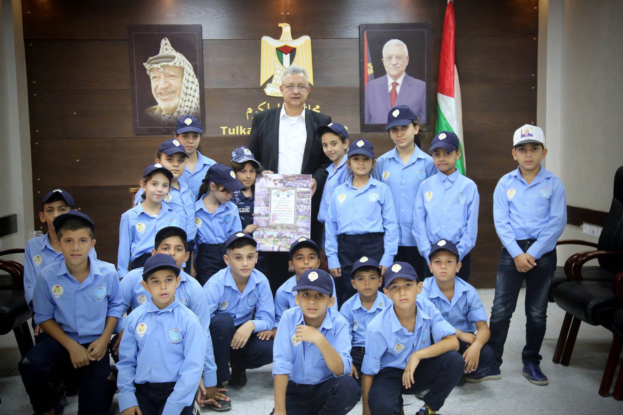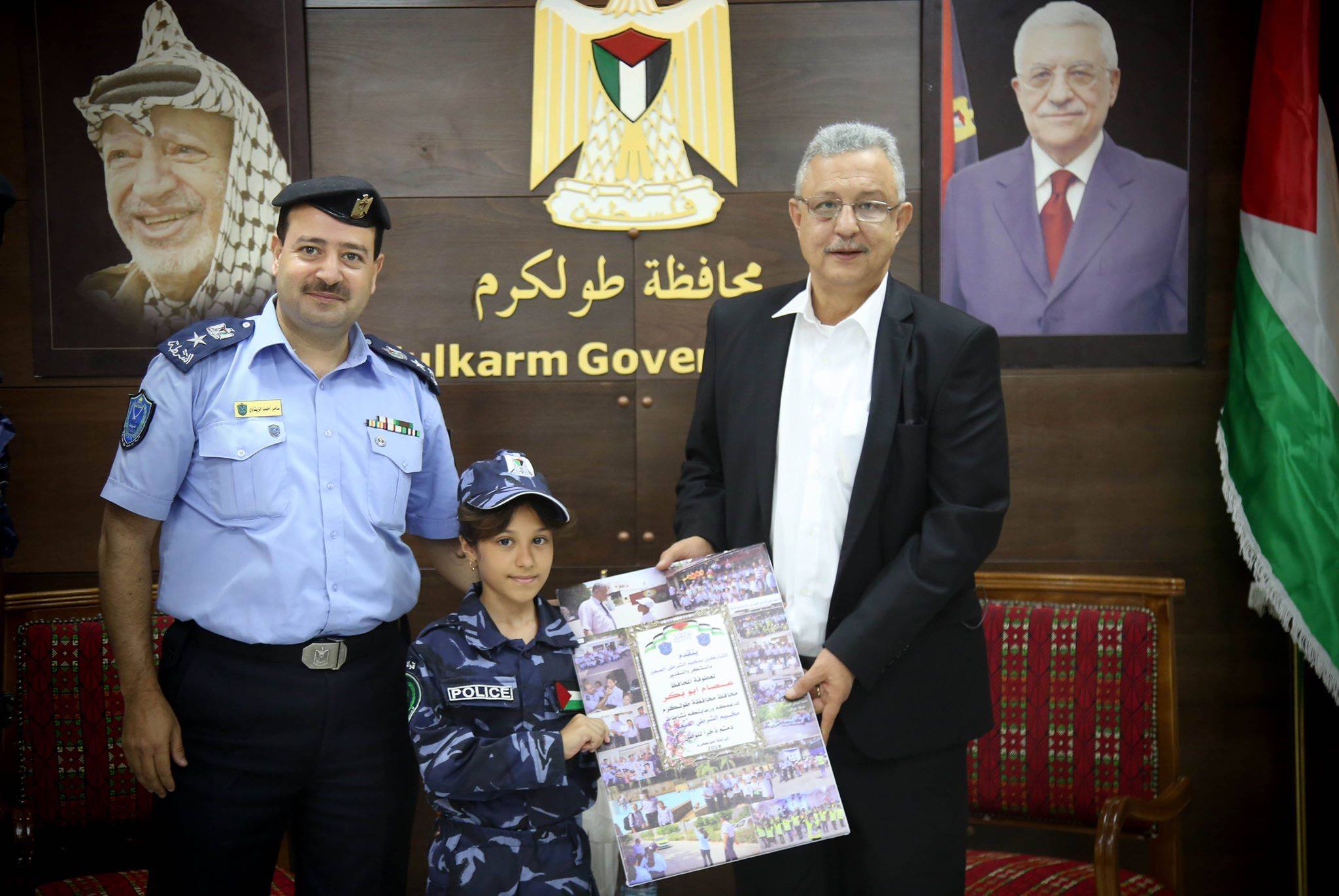 طولكرم- استقبل محافظ طولكرم عصام أبو بكر في دار المحافظة وفدا من مخيم الشرطي الصغير والذي تشرف عليه الإدارة العامة للعلاقات العامة والإعلام بالشرطة بالتعاون مع اللجنة الوطنية للمخيمات الصيفية بمشاركة المقدم سامر الزيتاوي مدير العلاقات العامة والإعلام في شرطة طولكرم ومشرف المخيم ومنشطي المخيم كل من النقيب مجدي زعبوط والنقيب توفيق أبو يونس .