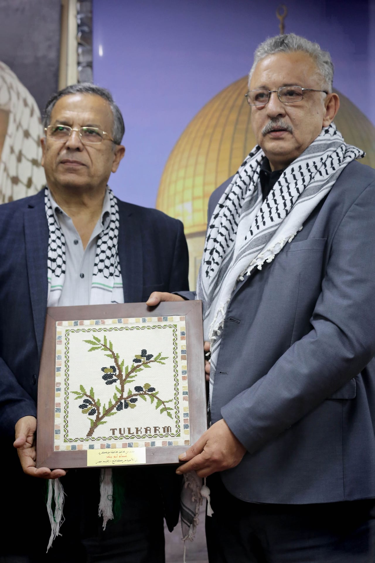 إلى ذلك عبر منعم عوض في كلمة له باسم الوفد عن السعادة بزيارة طولكرم، محافظة الشهداء والأسرى والمناضلين، موجهاً الشكر والتقدير للمحافظ أبو بكر وإقليم فتح بطولكرم على هذا الاستقبال، مشيراً إلى أن زيارة طولكرم وباقي محافظات الوطن ،لتوثيق التواصل، مع أهلنا وأبناء شعبنا على ارض الوطن، وتبادل التجارب والإطلاع على المعاناة وكل ما يتعرضون له من ممارسات الاحتلال والاعتداءات اليومية.