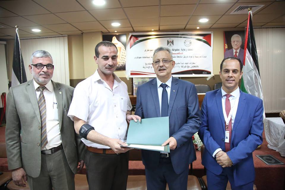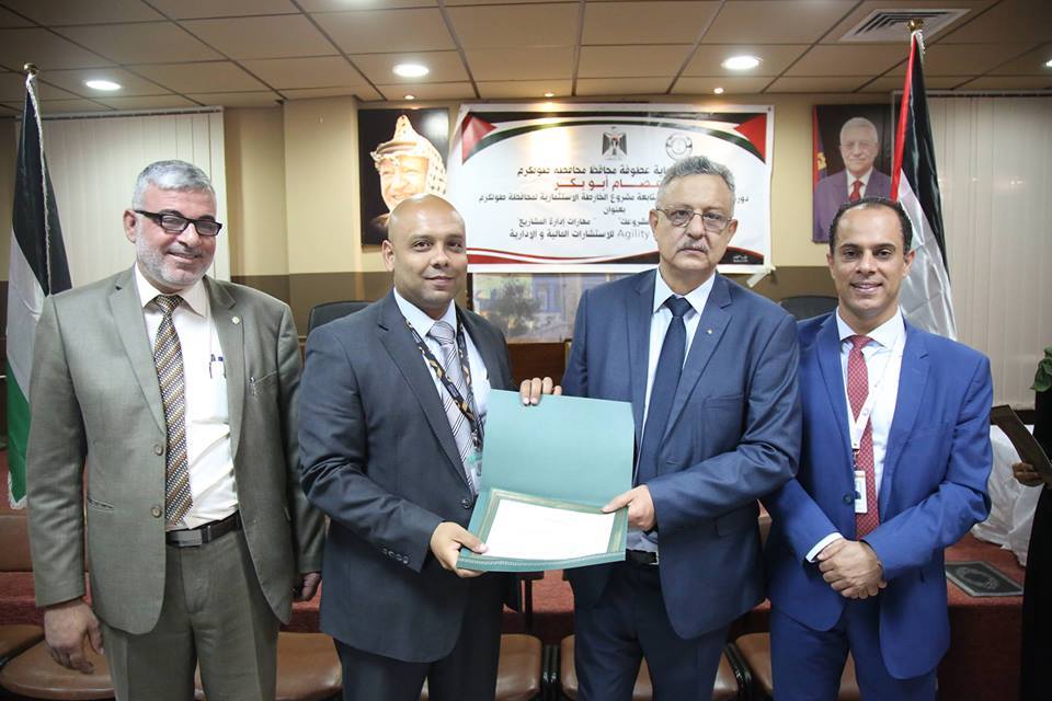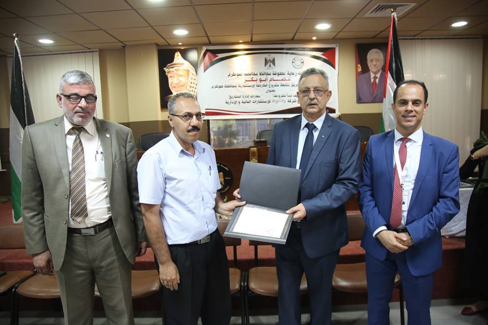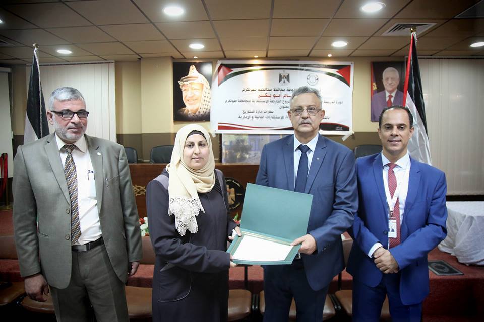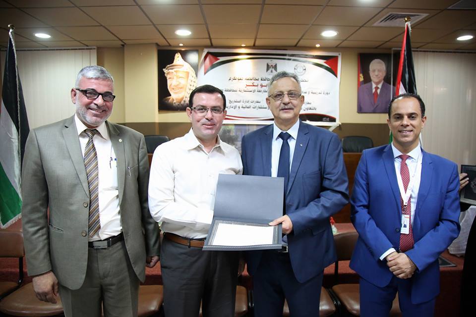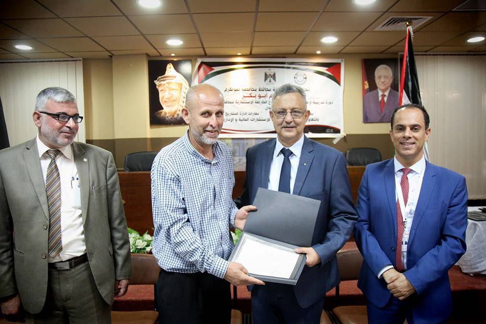 محافظ طولكرم عصام أبو بكر يسلم الشهادات للمشاركين بدورة تدريبية لاعداد فريق متابعة مشروع الخارطة الاستثمارية