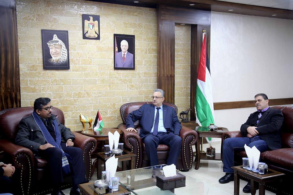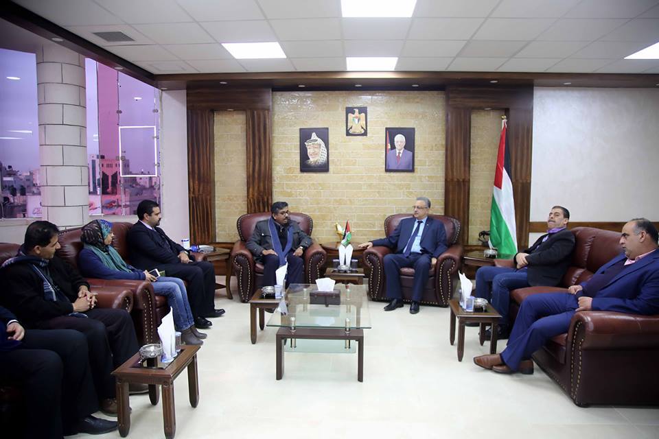 طولكرم- أطلع محافظ طولكرم عصام أبو بكر ممثل جمهورية الهند لدى دولة فلسطين السفير أنيش راجان على انتهاكات الاحتلال الاسرائيلي بحق شعبنا بشكل عام، ومحافظة طولكرم على وجه الخصوص، من الاقتحامات اليومية والحواجز وما تتركه من أثار على الوضع الاقتصادي بالمحافظة، وخاصة بما يتعلق بحرية الحركة لأهلنا في الداخل. جاء ذلك خلال استقبال السفير الهندي والوفد المرافق له، وبحضور ومشاركة جهات الاختصاص بالمحافظة.