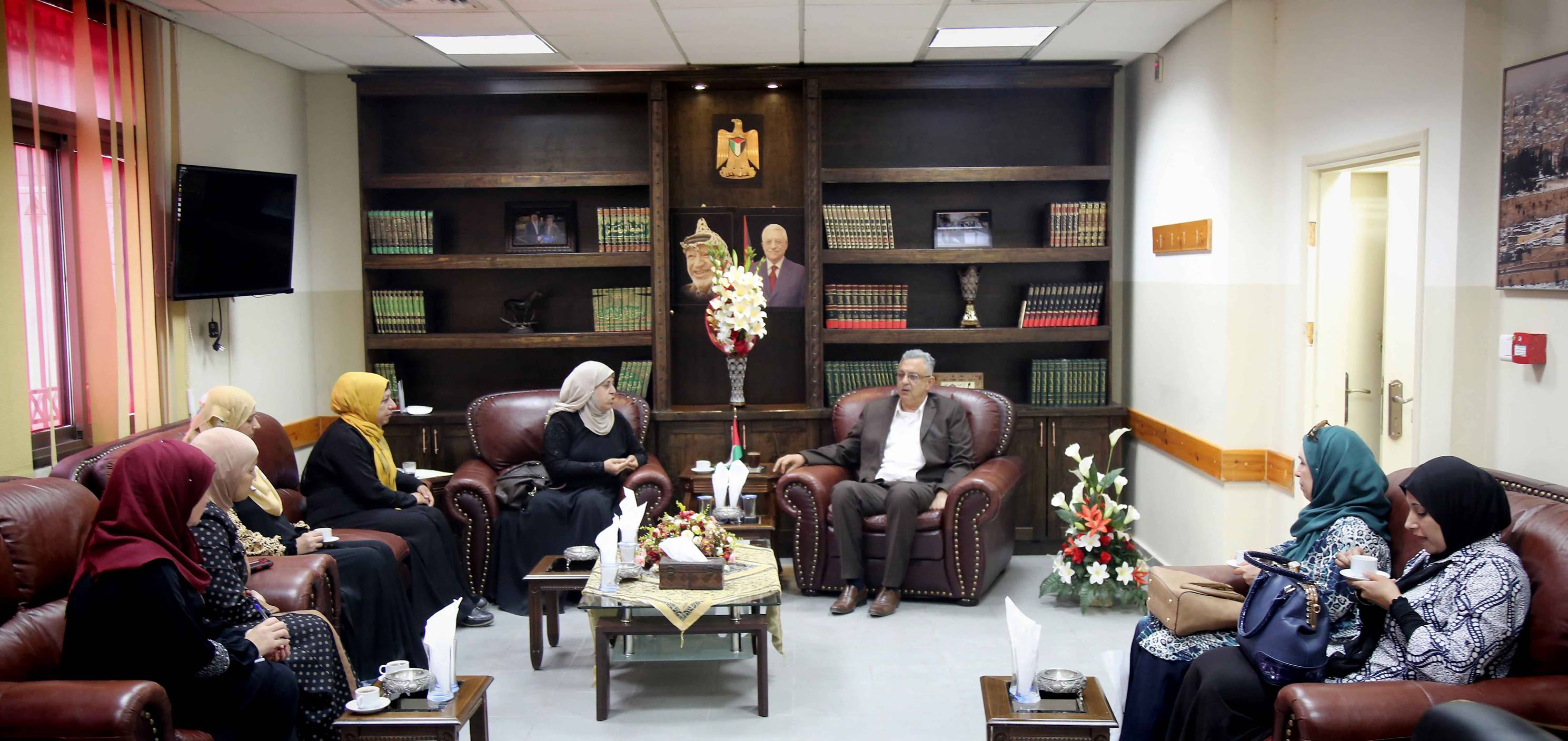 طولكرم- التقى محافظ طولكرم عصام أبو بكر بدار المحافظة الهيئة الادارية لجمعية التوعية والتراث للمرأة بعتيل، حيث قدمت رئيسة الجمعية مريم حافظ شرحاً حول النشاط والمشاكل التي تواجه العمل، موضحةً بان العمل النسوي للجمعية يتركز على المنتجات التراثية بالاضافة للاعمال الفردية النسوية من الأكلات الشعبية والمشاركة بجميع الفعاليات النسوية، مشيرة إلى المعيقات من حيث عدم توفر مقر خاص ملك للجمعية والذي يشكل عائقاً امام العمل والنشاط والتحرك على مستوى البلدة والقرى المجاورة لعتيل.