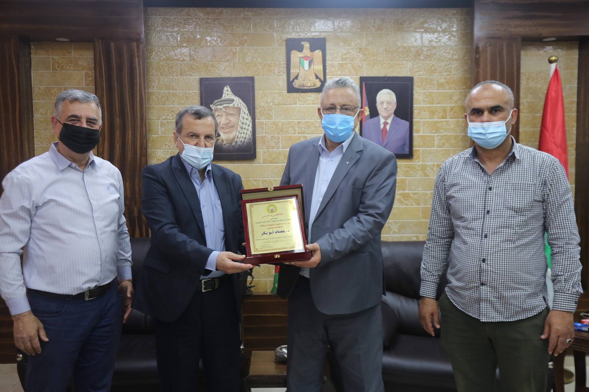 طولكرم – إلتقى محافظ طولكرم عصام أبو بكر بدار المحافظة، كلاً من رئيس جمعية أصدقاء مستشفى الش هيد د. ثابت ثابت د. سهيل أبو شنب، وأعضاء الجمعية مهند أبو صالح، وبشار أبو التين، وذلك في إطار إطلاع المحافظ على أنشطة الجمعية وبرامجها في خدمة المستشفى والمواطنين، وخاصة في ظل الظروف الصعبة ومواجهة جائحة كورونا.