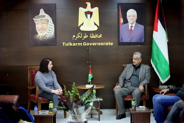 محافظ طولكرم اللواء د. كميل يستقبل وزيرة التنمية والإغاثة د. حمد ويناقشان مجموعة من القضايا
