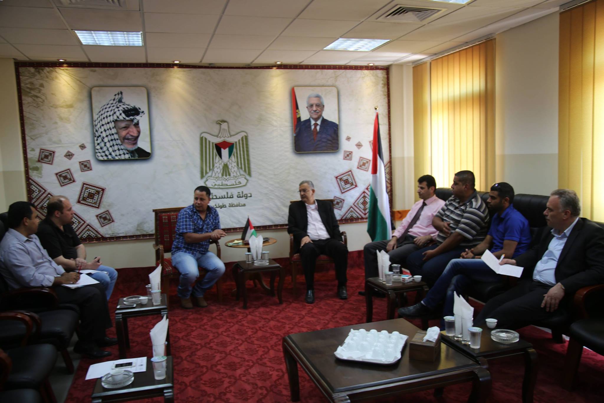 طولكرم- التقى محافظ طولكرم عصام أبو بكر في دار المحافظة وفداً من الجمعية الوطنية لدعم مرضى السرطان وذلك بحضور جهة الاختصاص في المحافظة، حيث قدم أمين سر الجمعية عنان بيشاوي للمحافظ أبو بكر شرحاً حول مهام الجمعية والأعمال التي تنفذها لدعم مرضى السرطان في جميع محافظات الوطن.
